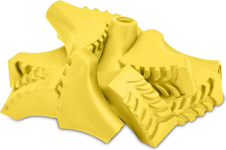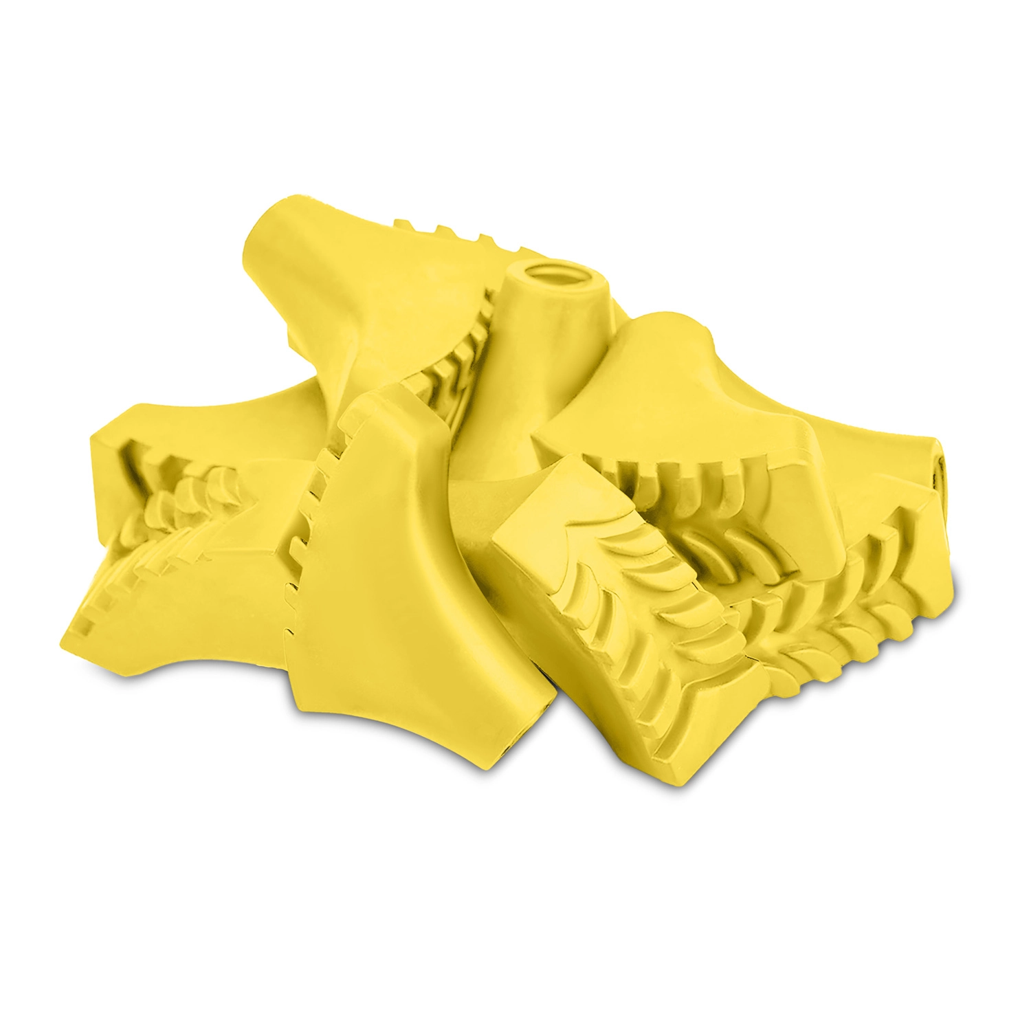 Szukasz praktycznego i trwałego zakończenia do swoich kijów nordic walking? Te żółte gumowe nasadki z głębokim bieżnikiem są zaprojektowane do codziennego użytku na różnych typach terenu. Zapewniają pewny krok, redukują hałas przy stawianiu kijów i chronią groty przed zużyciem.