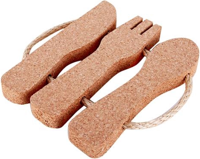 Ta dekoracyjna podkładka z naturalnego korka została zaprojektowana w kształcie sztućców, co czyni ją oryginalnym dodatkiem do każdej kuchni lub jadalni. Zapewnia niezawodną ochronę powierzchni przed gorącymi naczyniami, a jednocześnie nadaje nakrytemu stołowi niepowtarzalny wygląd.