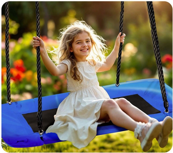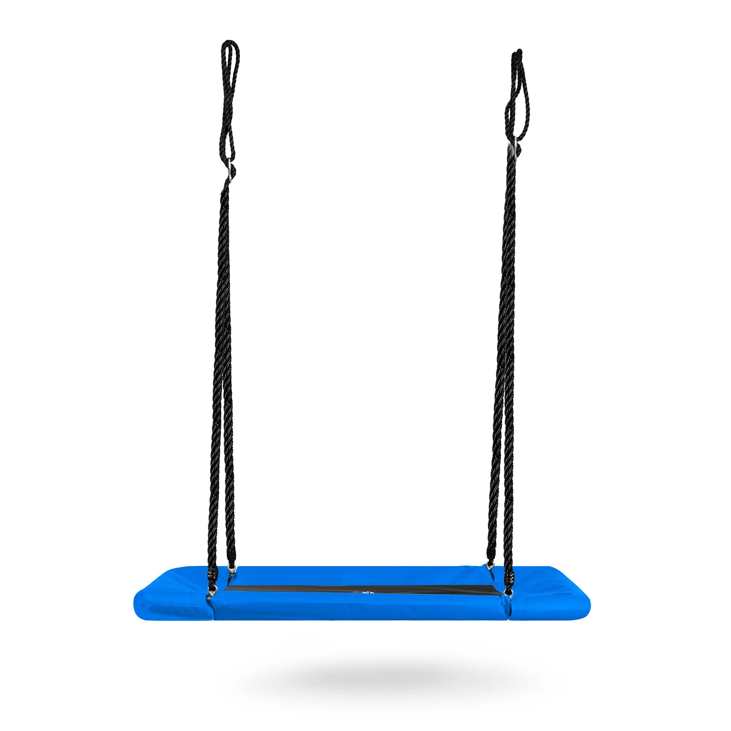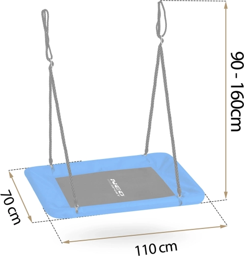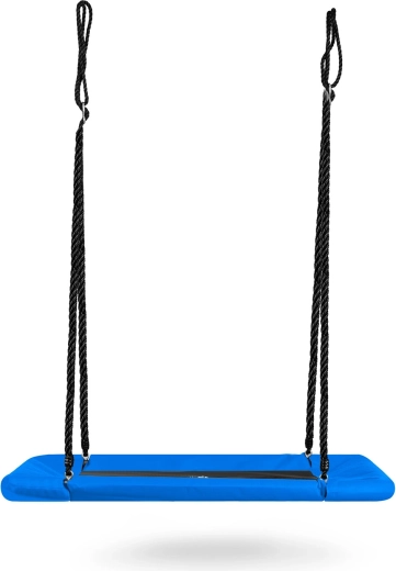 Duża prostokątna huśtawka typu „gniazdo” oferuje przestronne i wygodne siedzisko dla dzieci i dorosłych. Dzięki wodoodpornemu siedzisku Oxford 600D, mocnej stalowej ramie z piankowym oplotem oraz wytrzymałym, regulowanym linom jest idealna do bezpiecznej zabawy na zewnątrz. Łatwa w czyszczeniu i wytrzymuje do 150 kg.
