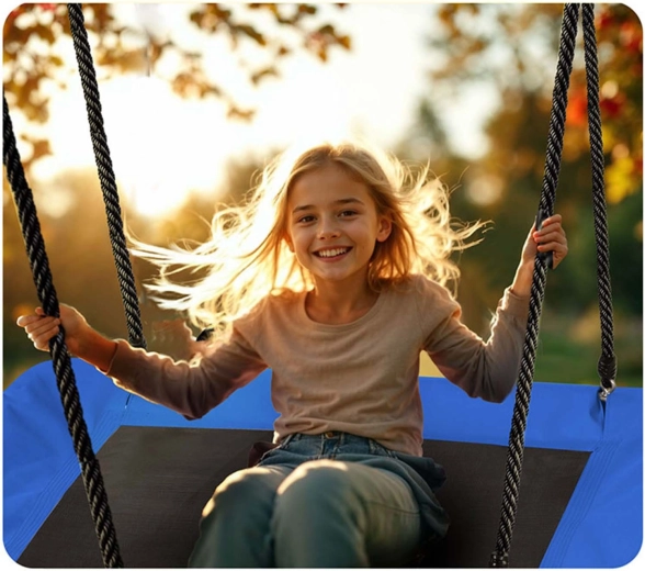 Regulowana długość lin do 160 cm umożliwia precyzyjne ustawienie wysokości w zależności od wieku i wzrostu dziecka. Huśtawka nadaje się do ogrodu, pergoli czy placu zabaw, a dzięki udźwigowi 150 kg mogą z niej korzystać także dorośli.