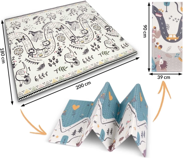 - Dwustronny design 2w1: ścieżki do zabawy, zwierzątka i liczby dla rozrywki i nauki.