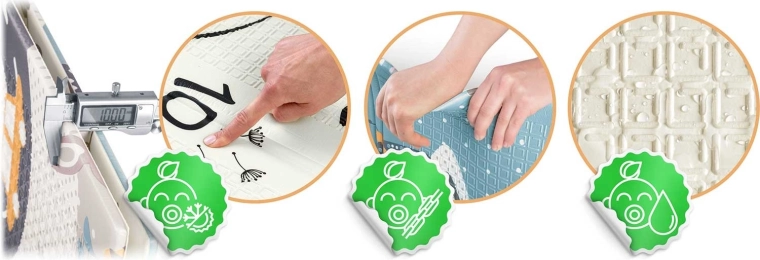 - Bezpieczny materiał: XPE bez BPA, PVC, ftalanów i formamidu, certyfikaty CE, EN71-1, EN71-2, EN71-3.