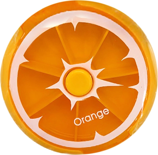 Koniec z zapomnianymi tabletkami. Ten okrągły dozownik na leki z atrakcyjnym motywem pomarańczy oferuje proste i szybkie rozdzielenie medykacji. Idealny do codziennego użytku, w podróży i w pracy.