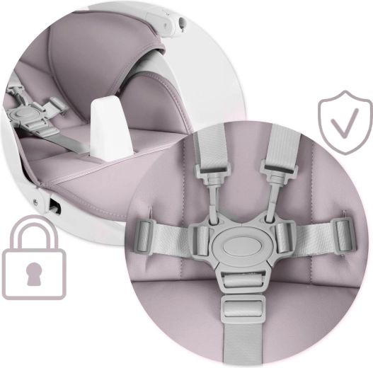 • Bezpieczeństwo: 5-punktowe pasy, solidna rama, europejska norma EN 14988.