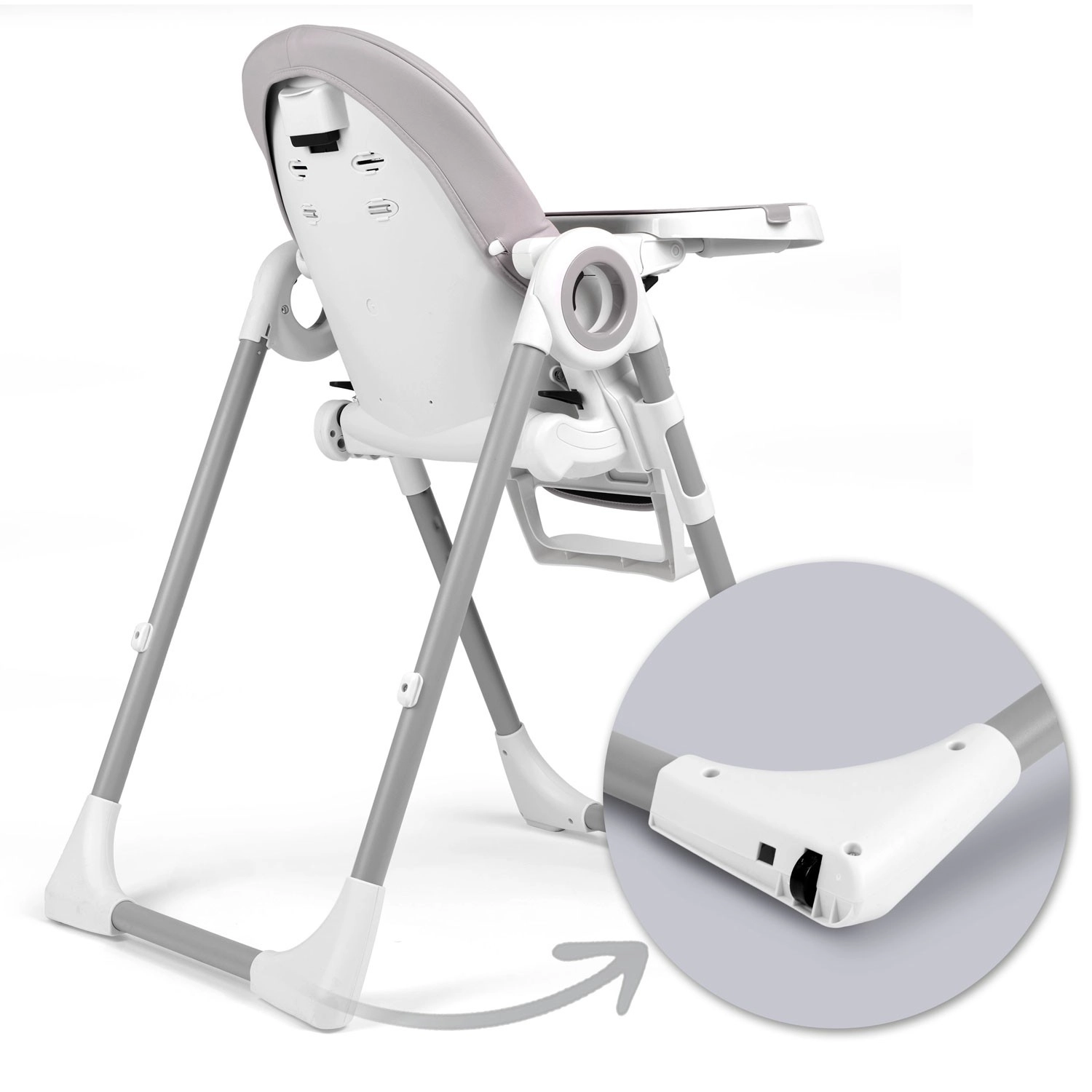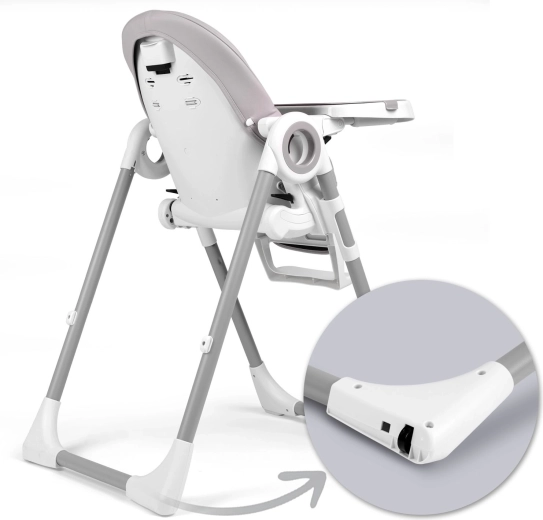 Stabilna metalowa konstrukcja z elementami antypoślizgowymi, 5-punktowe pasy bezpieczeństwa oraz certyfikacja EN 14988 zapewniają spokój podczas codziennego użytkowania. Praktyczne tylne kółka ułatwiają przemieszczanie po mieszkaniu, a kompaktowe składanie oszczędza miejsce, gdy krzesełko nie jest potrzebne.