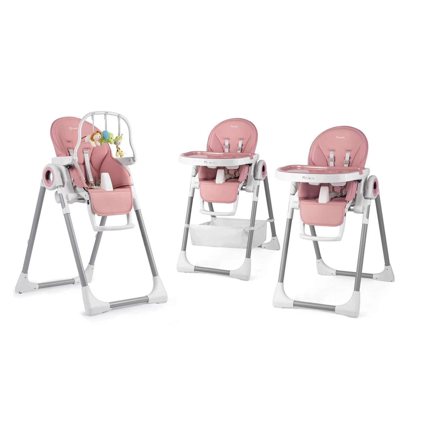 NUKIDO Belo to nowoczesne, multifunkcyjne krzesełko do karmienia, które rośnie wraz z dzieckiem. Dzięki 8‑stopniowej regulacji wysokości i 5 regulowanym pozycjom oparcia z łatwością dopasujesz siedzisko do każdej sytuacji – od karmienia, przez odpoczynek, po zabawę. Przestronna tacka z wyjmowaną górną wkładką i podwyższonymi krawędziami zapobiega rozlewaniu; można ją opłukać pod bieżącą wodą lub włożyć do zmywarki.