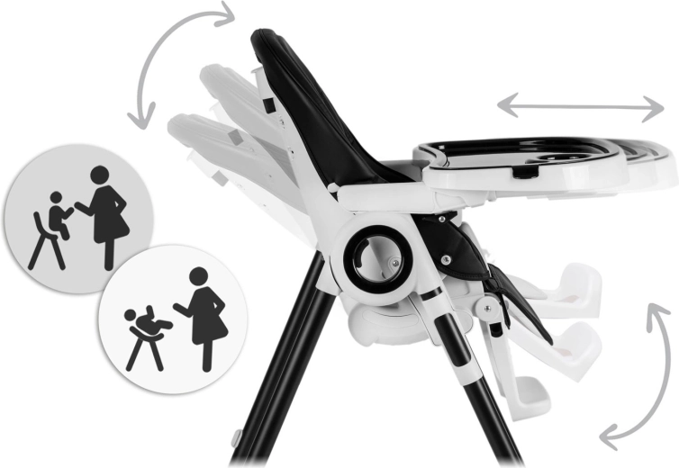 8-stopniowa regulacja wysokości, 5 pozycji oparcia pleców i regulowany podnóżek zapewniają wygodę podczas posiłków i odpoczynku od pierwszych miesięcy aż do 3. roku życia.