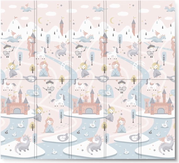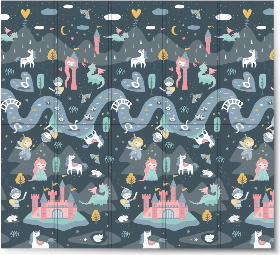 Dwie stylowe strony – delikatne pastelowe motywy oraz bardziej wyrazista, ciemniejsza bajkowa grafika – stymulują postrzeganie kolorów i wyobraźnię, a jednocześnie pasują do każdego wnętrza.