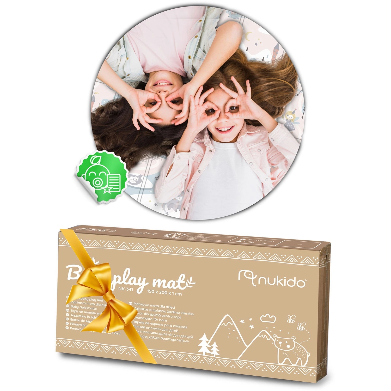 Składana mata do zabawy NUKIDO z premium bezzapachowej pianki XPE tworzy miękką, antypoślizgową i higieniczną powierzchnię dla maluchów i przedszkolaków. Dzięki grubości 1 cm skutecznie absorbuje wstrząsy, chroni przed twardą podłogą i zapewnia izolację termiczną. Dwustronny nadruk oferuje dwie stylowe wersje – delikatne pastelowe motywy oraz ciemniejszy bajkowy design – aby mata pasowała do wnętrza i cieszyła dzieci przez dłuższy czas.