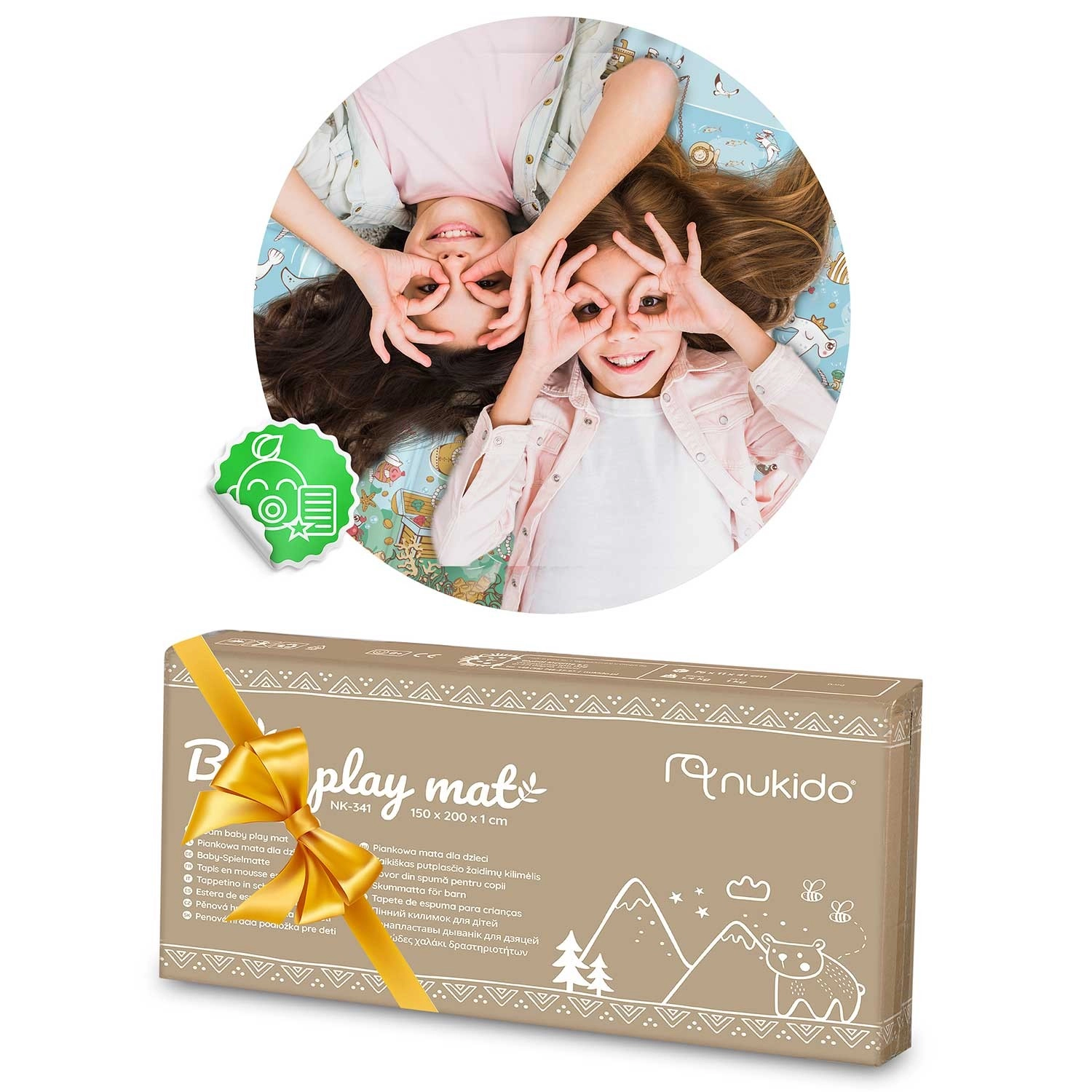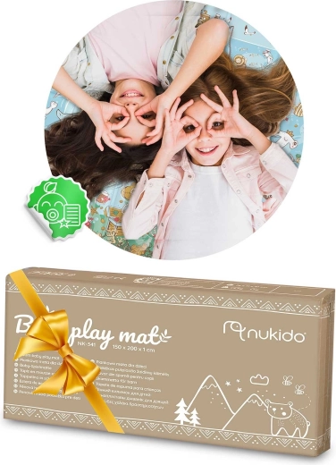 Składana mata do zabawy NUKIDO zapewnia dzieciom miękką, ciepłą i bezpieczną przestrzeń do zabawy, raczkowania i ćwiczeń. Dzięki dwustronnemu designowi z motywem oceanu i leśnego labiryntu pobudza wyobraźnię i naturalnie wspiera rozwój małej i dużej motoryki. Wysokiej jakości pianka XPE jest bezzapachowa, hipoalergiczna i przy grubości 1 cm znakomicie amortyzuje upadki na twardej podłodze.