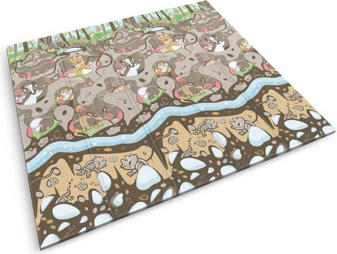 Dwa radosne motywy na jednej macie wspierają percepcję, naukę i dłuższą zabawę. Wystarczy odwrócić, by w sekundę zmienić atmosferę kącika zabaw.