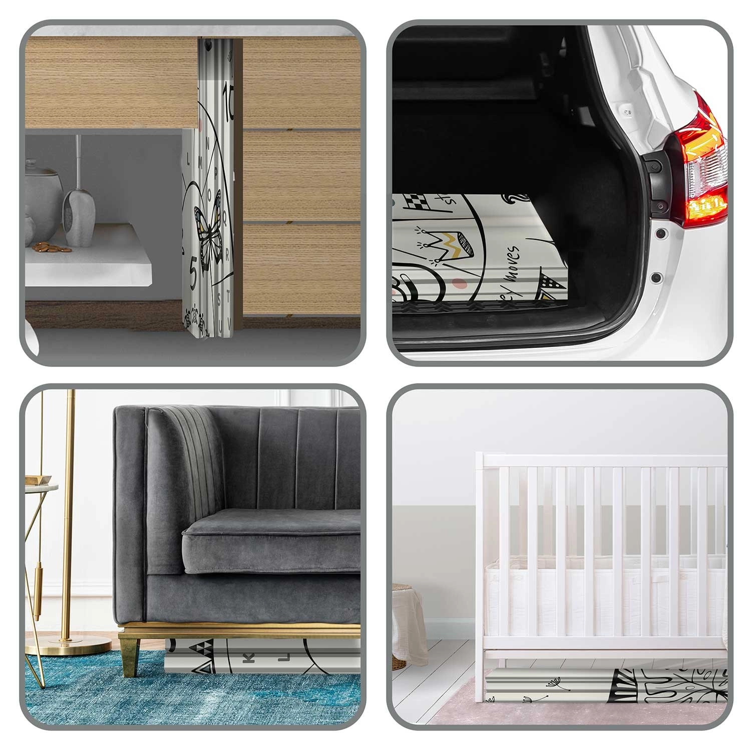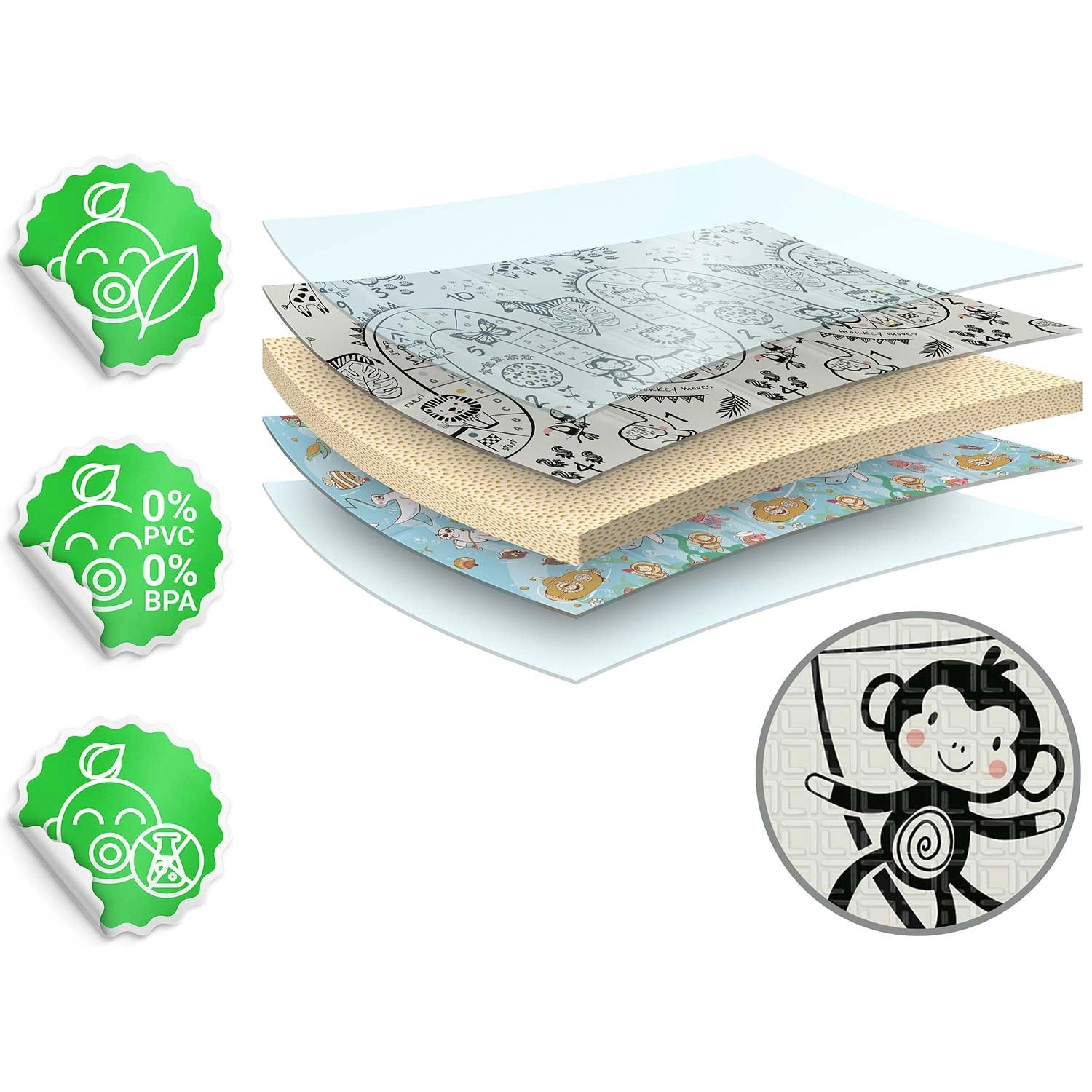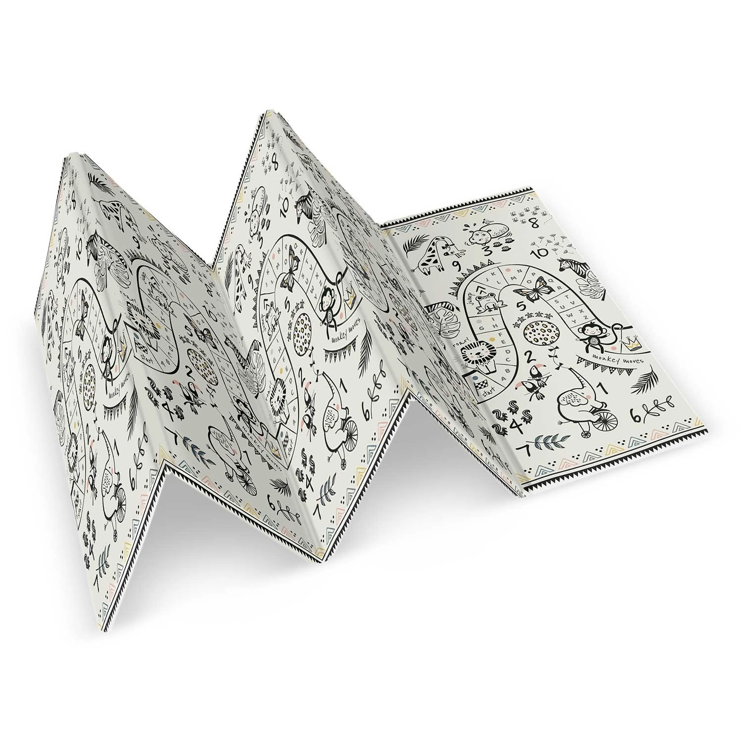 Mata składa się akordeonowo, więc łatwo ją przeniesiesz, schowasz pod łóżko lub do auta i zabierzesz w odwiedziny, do sali zabaw czy na piknik. Wysokiej jakości gorące prasowanie zwiększa trwałość, krawędzie się nie strzępią, a materiał jest bezzapachowy i bez alergenów.
