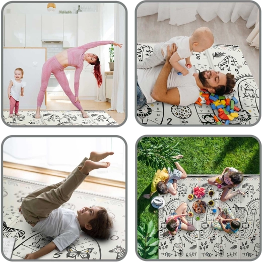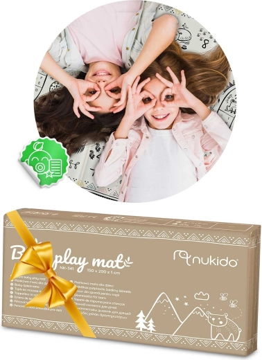 Duża składana mata NUKIDO o wymiarach 200 × 180 × 1 cm zapewnia miękką amortyzację upadków, izolację termiczną od zimnej podłogi oraz dwustronny design ocean–safari dla zabawy i nauki. Jest wodoodporna, łatwa w czyszczeniu, ma powierzchnię antypoślizgową i została wykonana z bezpiecznej pianki XPE bez BPA, PVC, ftalanów i formamidu. Idealna do zabawy, raczkowania, pierwszych kroków, ćwiczeń i pikniku.