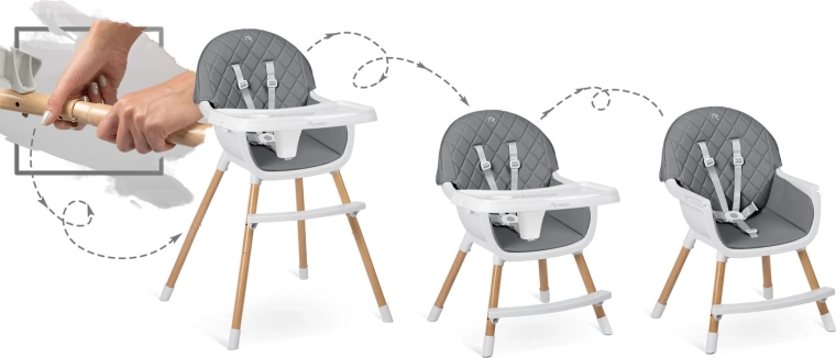 funkcja 3w1 (wysokie krzesełko / niższe krzesełko / samodzielne siedzisko)