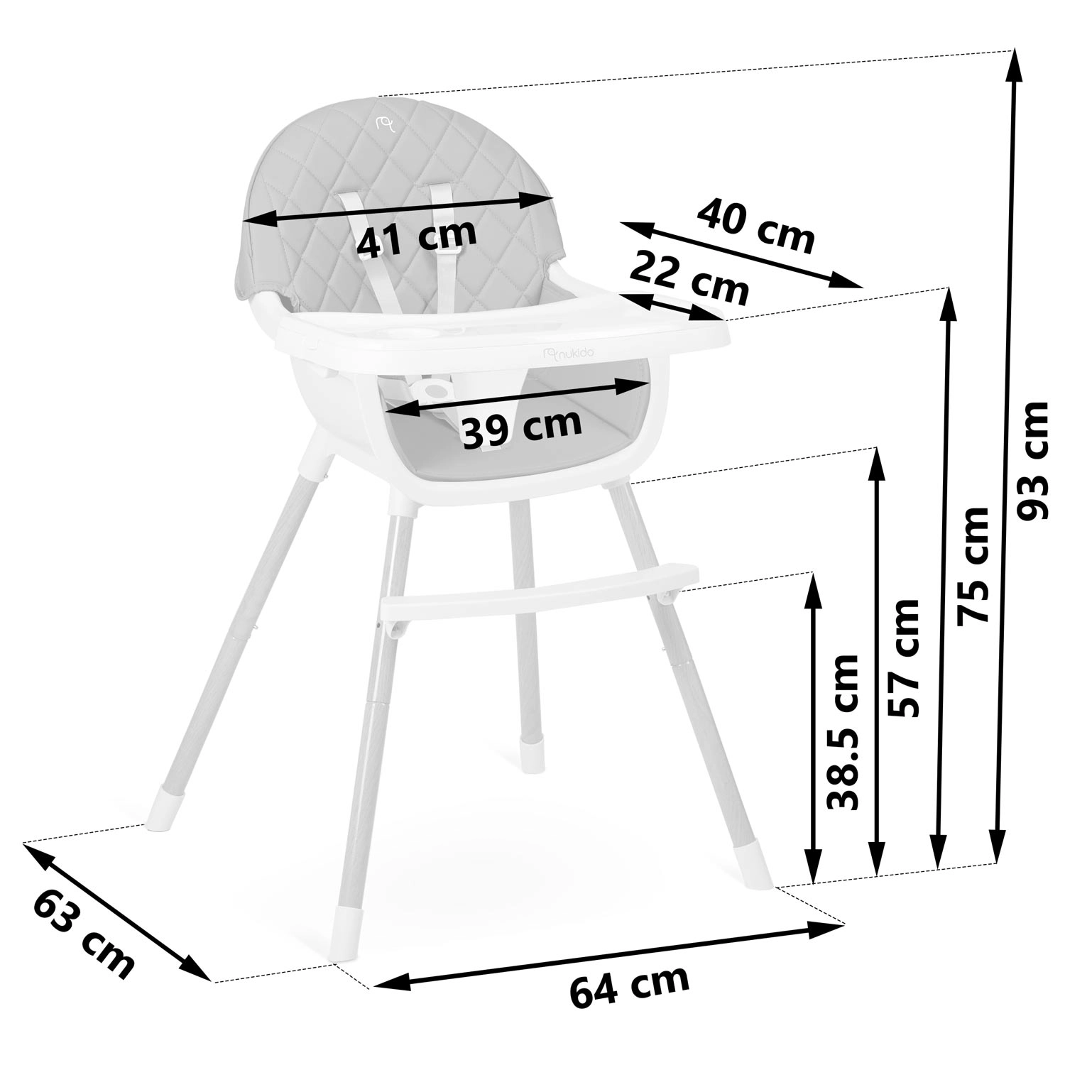 Krzesełko do karmienia NUKIDO Lilo szare 3w1