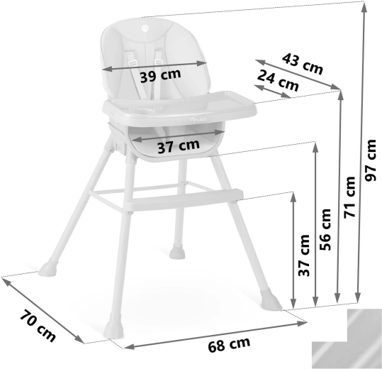 • Funkcja 3w1: wysokie krzesełko / niskie krzesełko z tacką / dziecięcy fotelik
