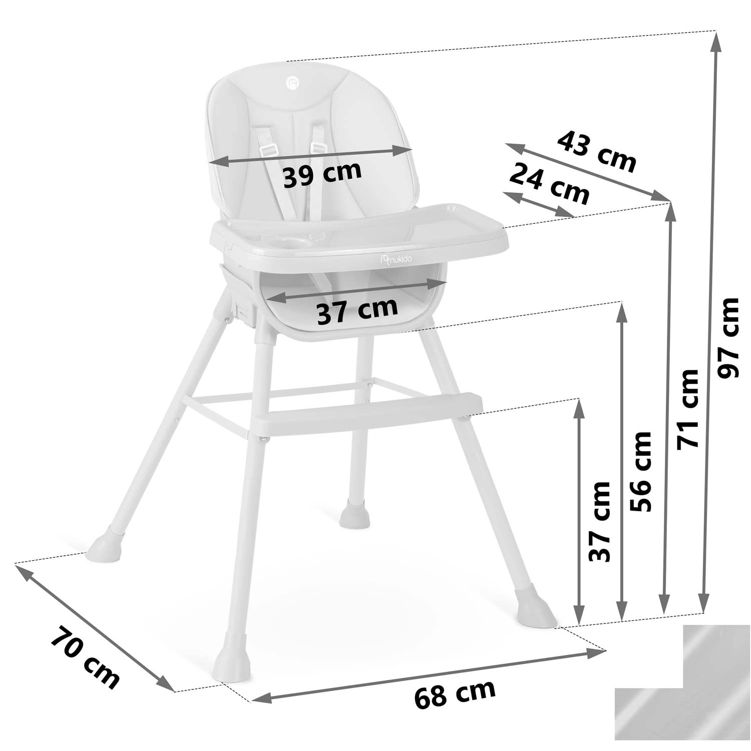 Praktyczne i stylowe dziecięce krzesełko do karmienia NUKIDO Tilo 3w1 rośnie razem z Twoim dzieckiem – od pierwszych posiłków po samodzielne jedzenie i zabawę. Oferuje regulowaną i odpinaną tackę z podwyższonymi krawędziami i wkładką, łatwo zmywalne materiały, 5‑punktowe pasy bezpieczeństwa oraz stabilne nogi z antypoślizgowymi końcówkami. Idealne do karmienia, rysowania i czytania – bezpiecznie, wygodnie i czysto w kilka chwil.
