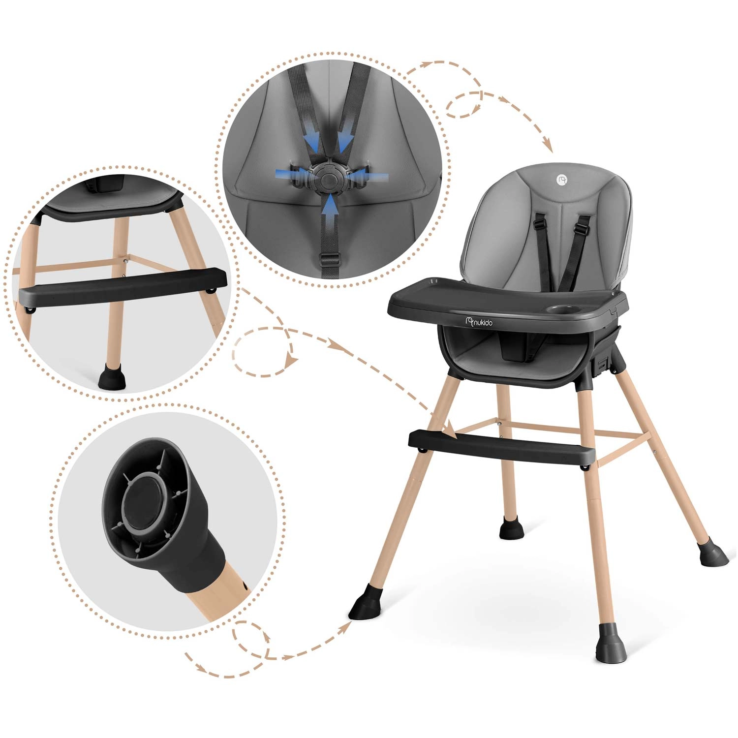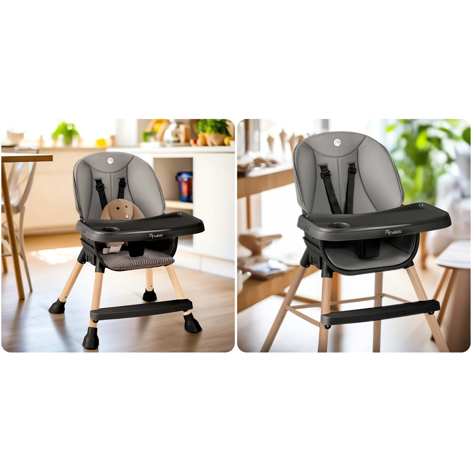 Krzesełko do karmienia NUKIDO Tilo 3w1 szaro‑czarne