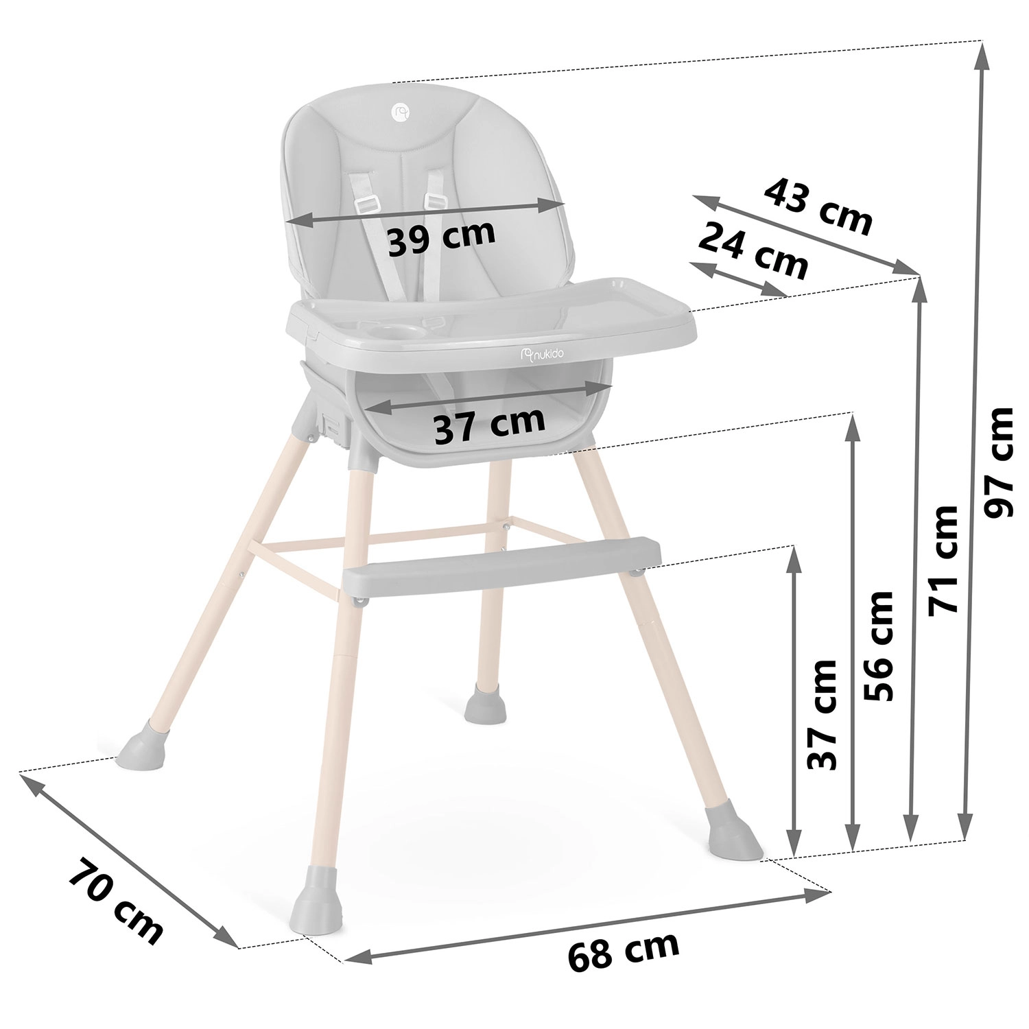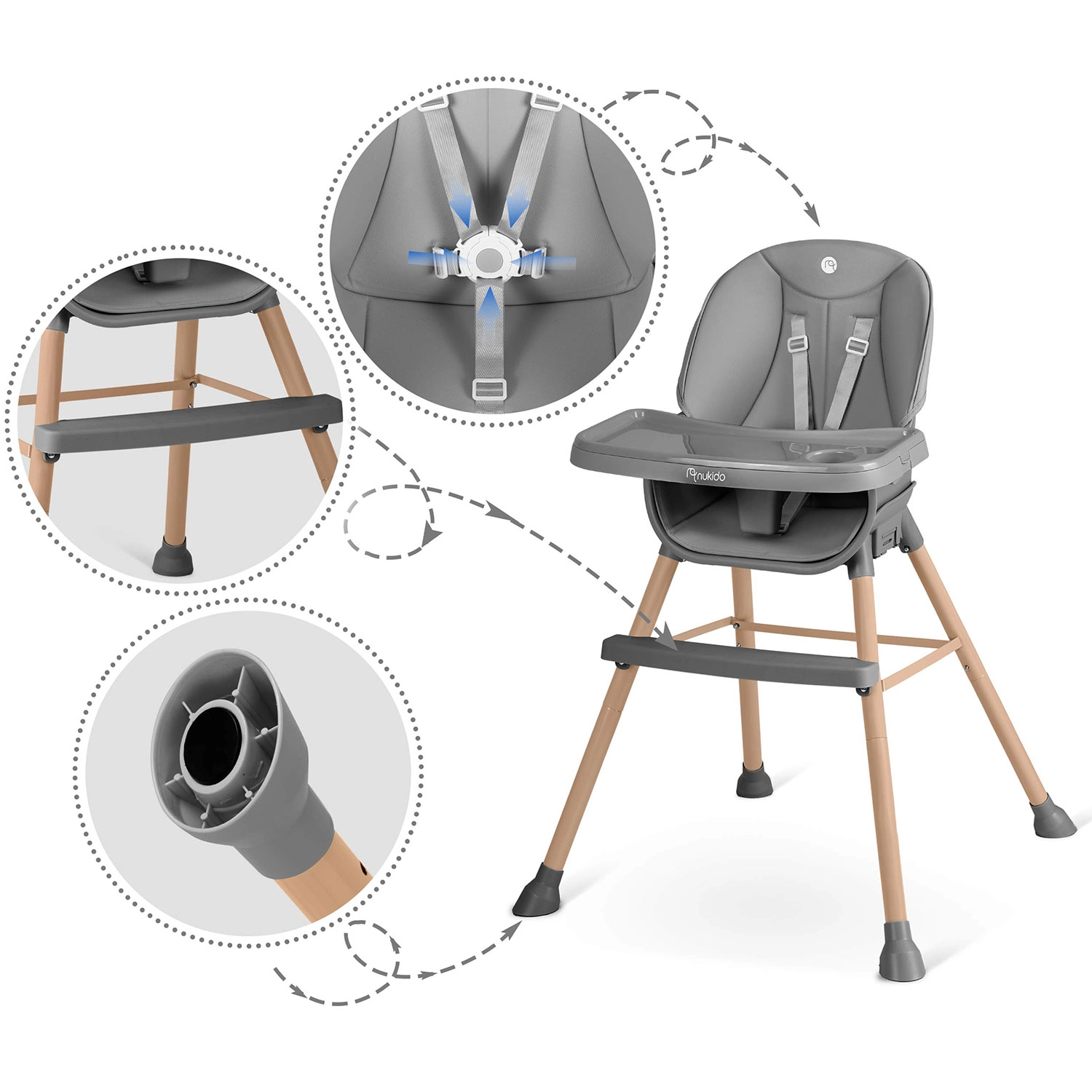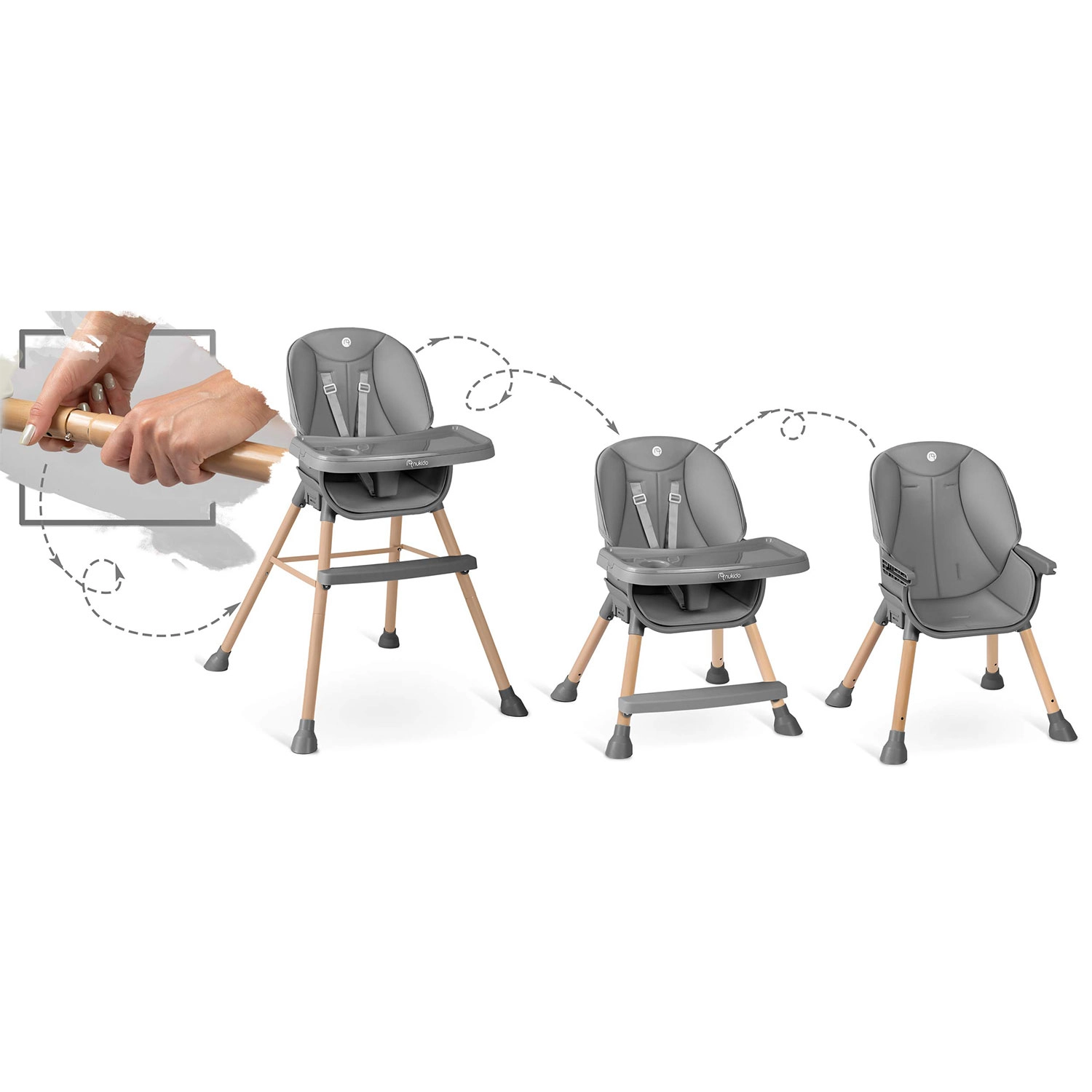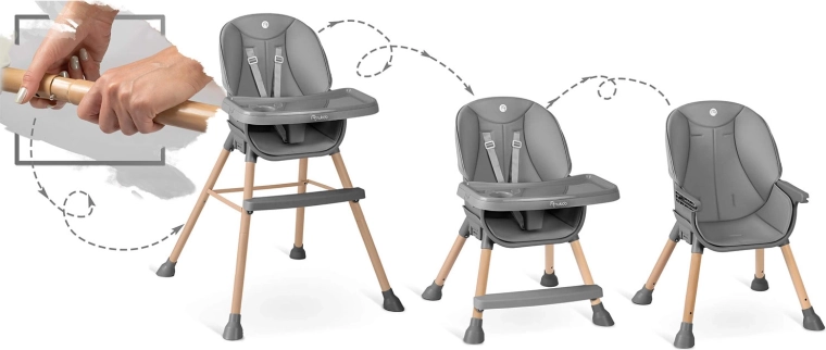 Krzesełko do karmienia NUKIDO Tilo 3w1, szare