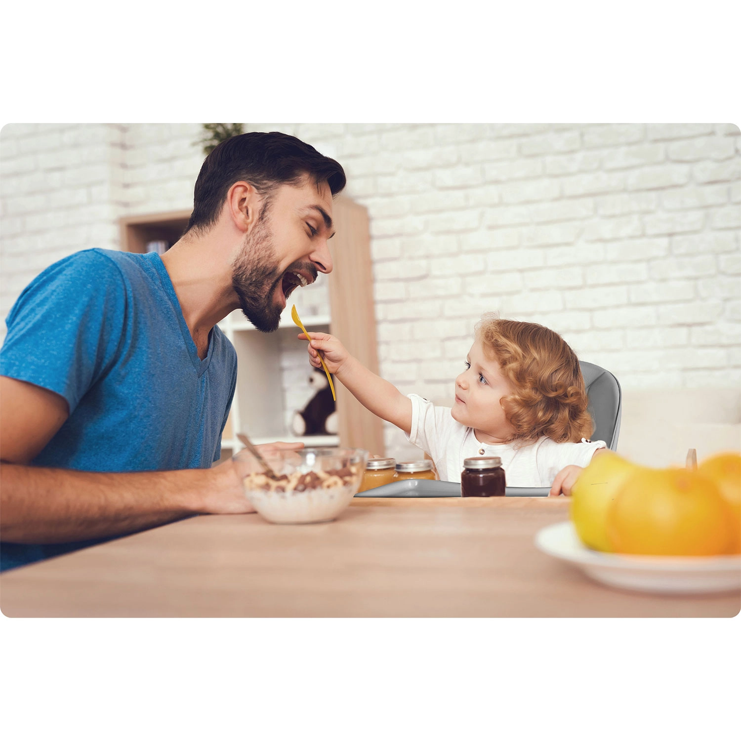Łatwo dopasujesz konfigurację do aktywności – jako wysokie krzesełko do stołu, niskie siedzisko do zabawy lub bez blatu do wspólnego posiłku.
