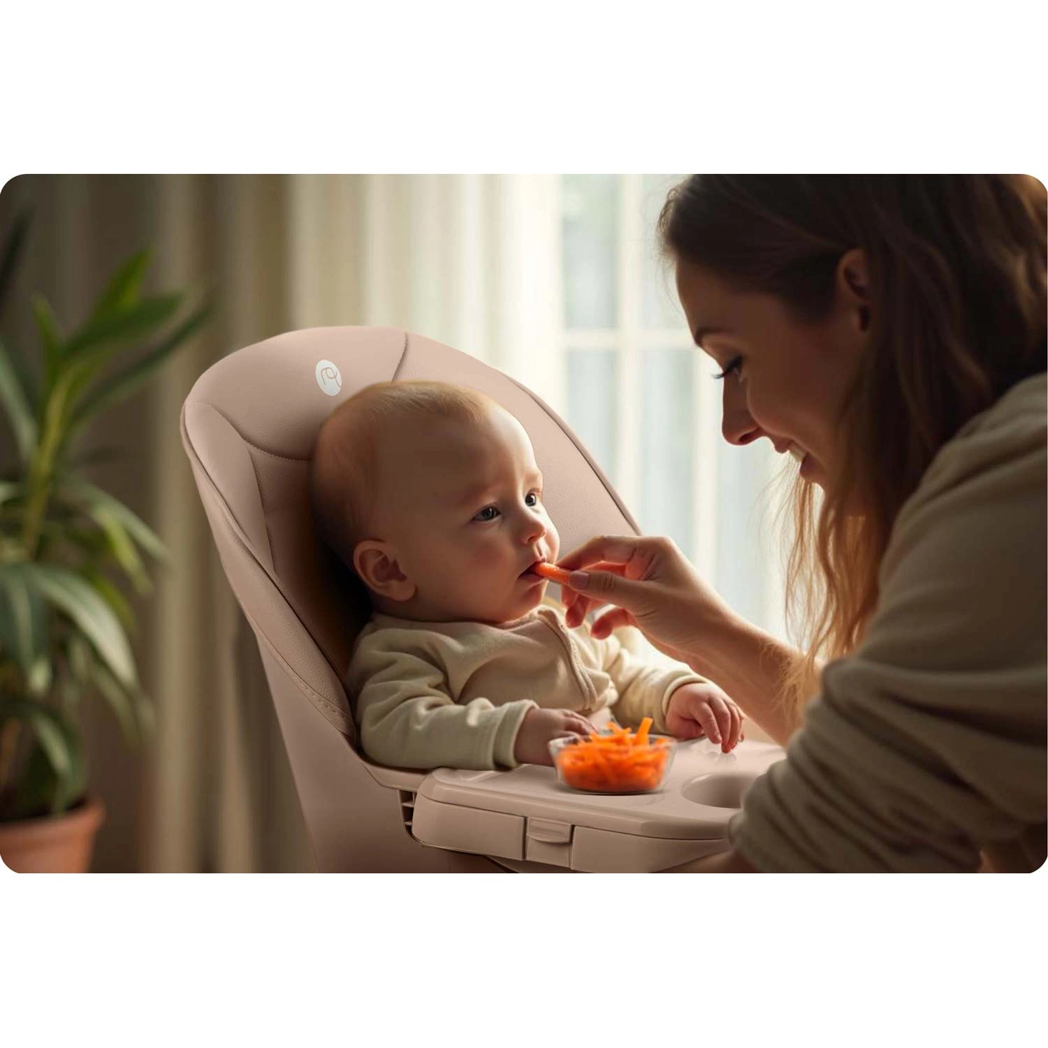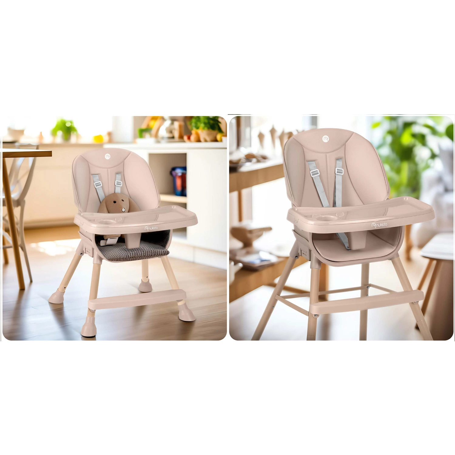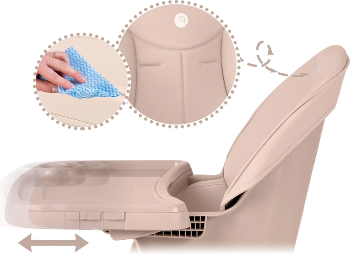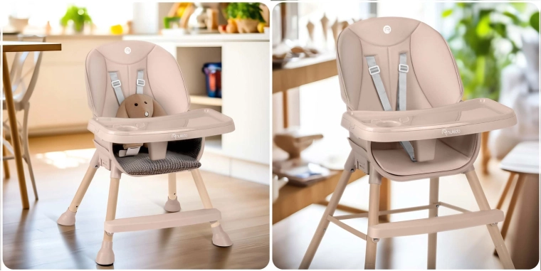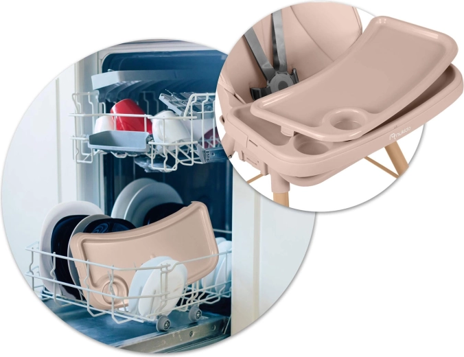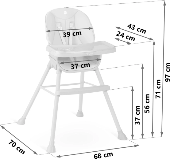 NUKIDO Tilo to wszechstronne dziecięce krzesełko do karmienia 3w1, które z łatwością przekształcisz z wysokiego krzesełka w niskie krzesełko dla malucha lub w samodzielne siedzisko. Dzięki płynnej regulacji odległości tacki i jej szybko odpinanej wkładce utrzymasz porządek w kilka chwil – wystarczy zdjąć wkładkę i opłukać lub włożyć do zmywarki.