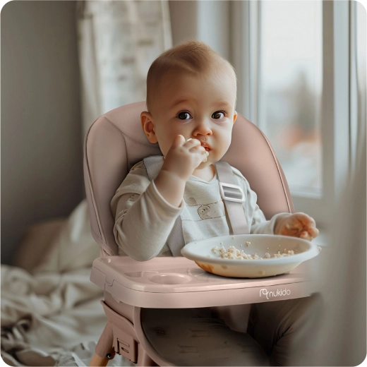 Jedno krzesełko, trzy sposoby użycia. Dopasuj NUKIDO Tilo do wieku i aktywności dziecka – od karmienia po zabawę przy stoliku.