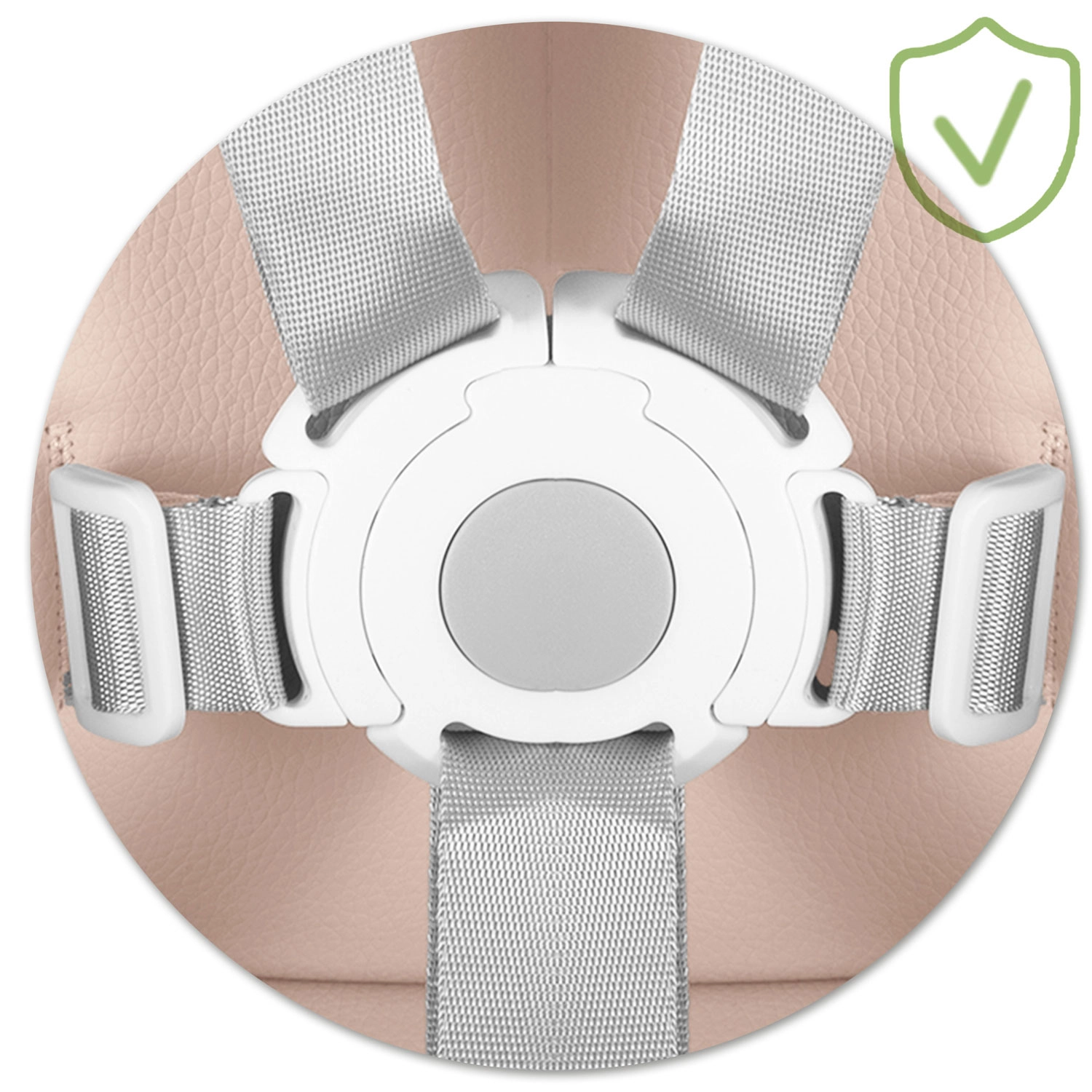 Praktyczne detale sprawiają, że Tilo to świetny wybór na co dzień: nienasiąkliwa tapicerka wystarczy przetrzeć wilgotną ściereczką, 5‑punktowe pasy bezpiecznie utrzymują dziecko na miejscu, a solidna stalowa konstrukcja nóg z antypoślizgowymi końcówkami zapewnia stabilność na różnych powierzchniach. Idealne do jedzenia, rysowania, budowania klocków i pierwszego samodzielnego czytania.