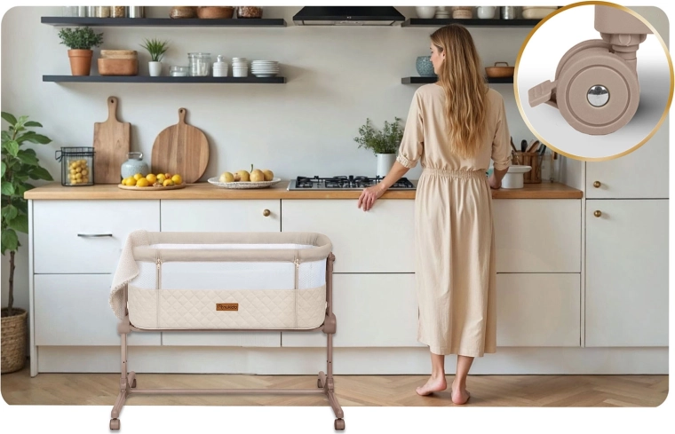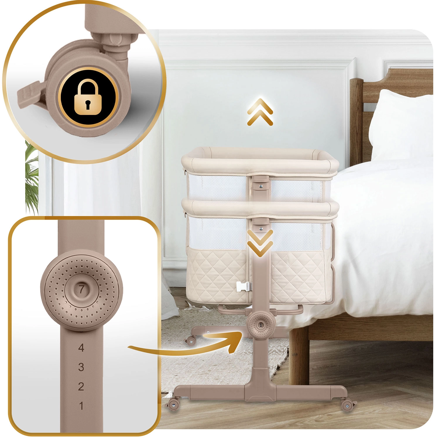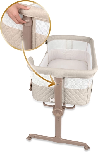 Każdy bok można ustawić osobno – łatwo wyrównasz łóżeczko z łóżkiem rodziców lub delikatnie je nachylisz dla większego komfortu dziecka i ulgi przy refluksie.
