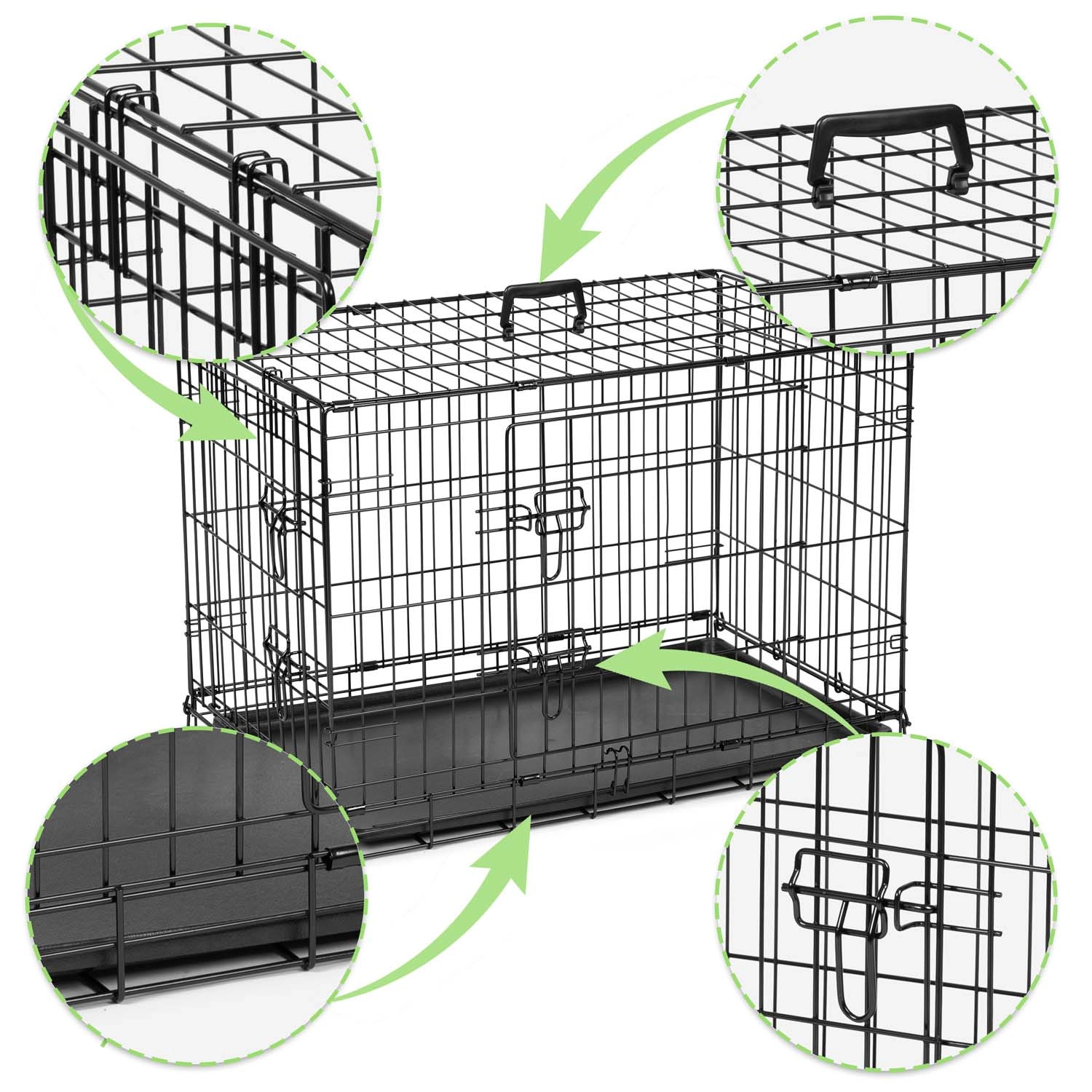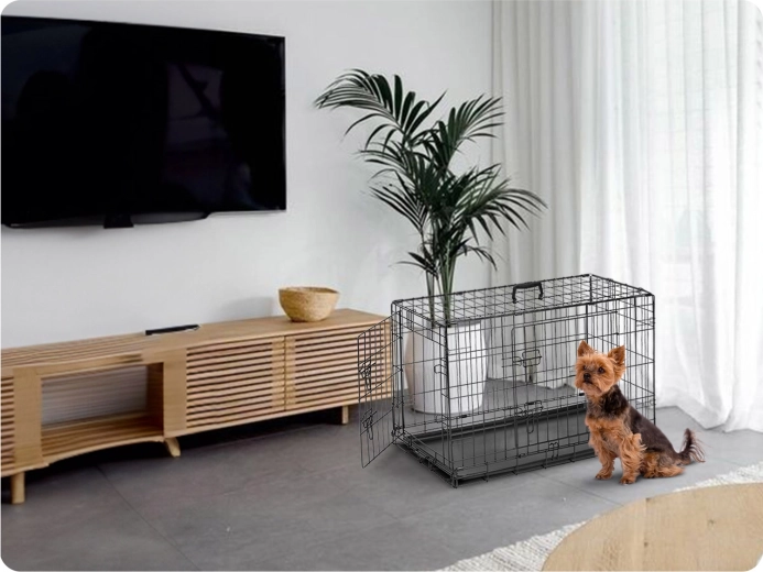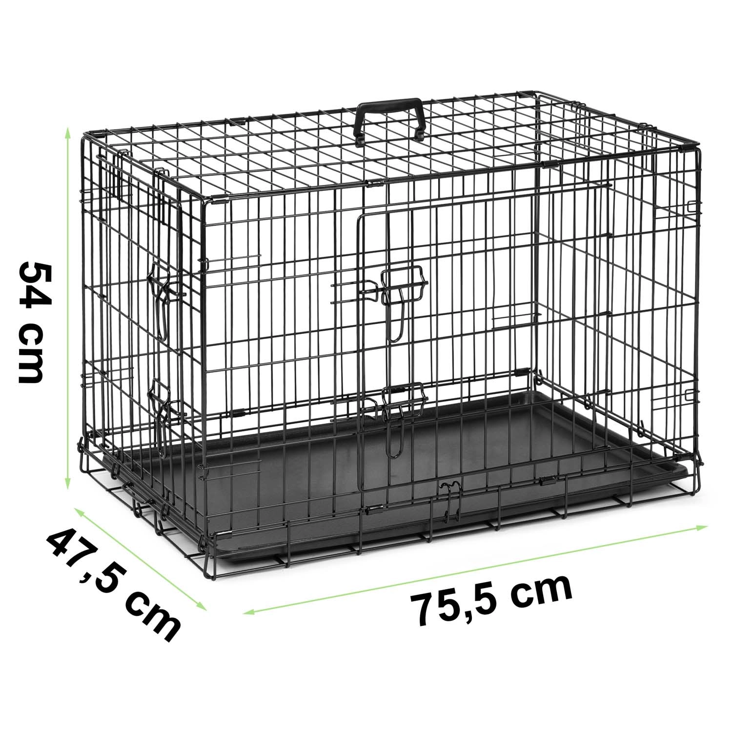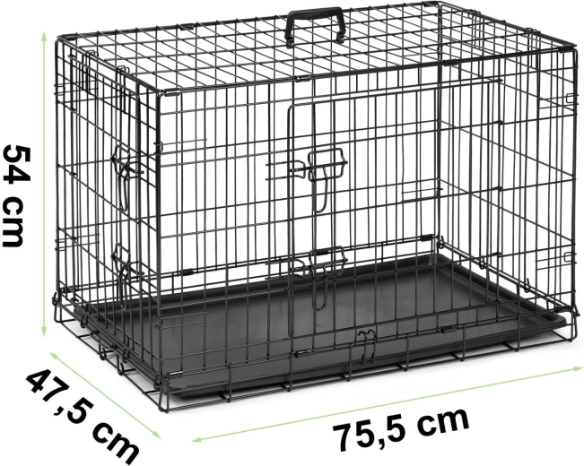 Ta składana metalowa klatka dla psów w rozmiarze S jest idealna do codziennego użytku, treningu i podróżowania. Stabilna konstrukcja druciana z lakierem proszkowym zapewnia doskonałą wentylację i widoczność, a wysuwana plastikowa taca ułatwia pielęgnację. Dwoje drzwi z bezpiecznymi przesuwnymi zamkami umożliwia wygodne wejście i elastyczne ustawienie klatki w mieszkaniu i w bagażniku auta.