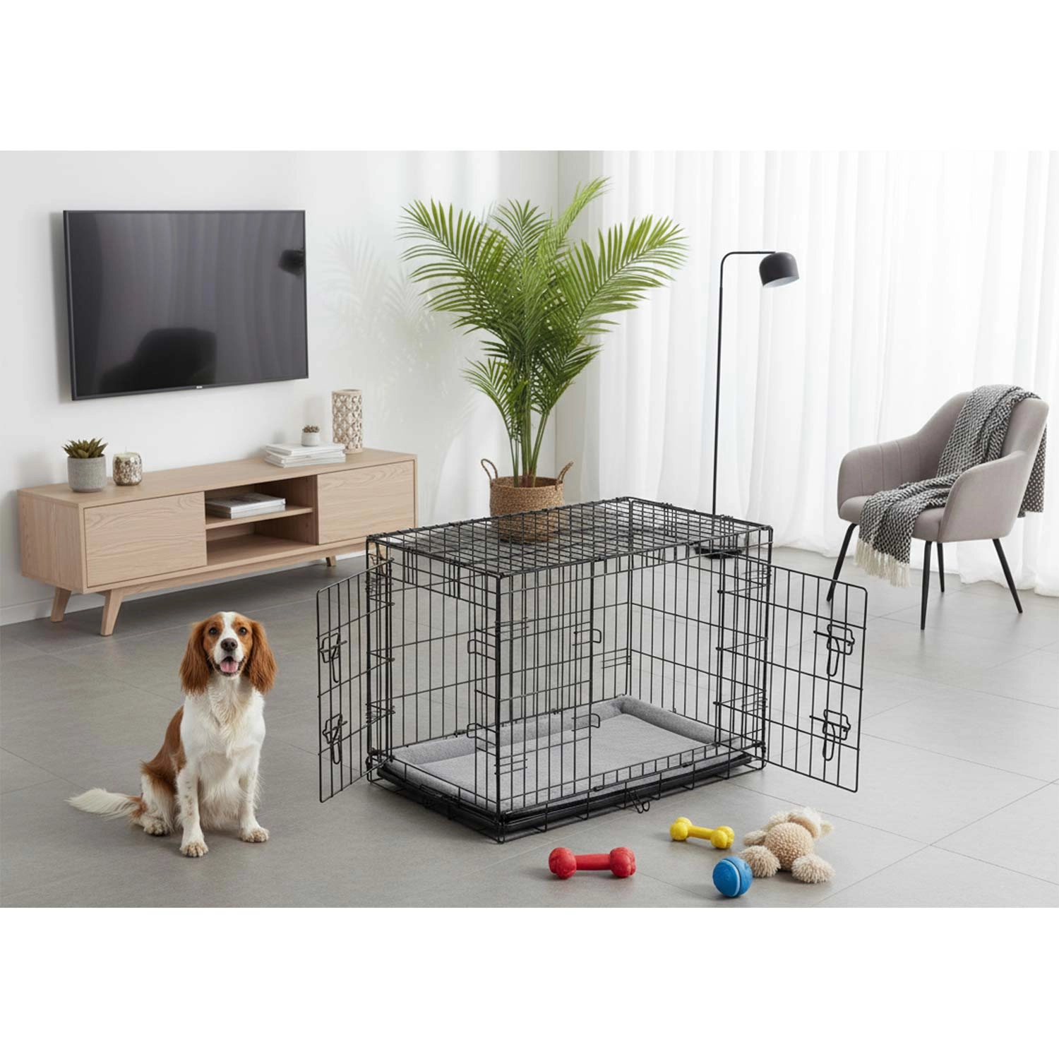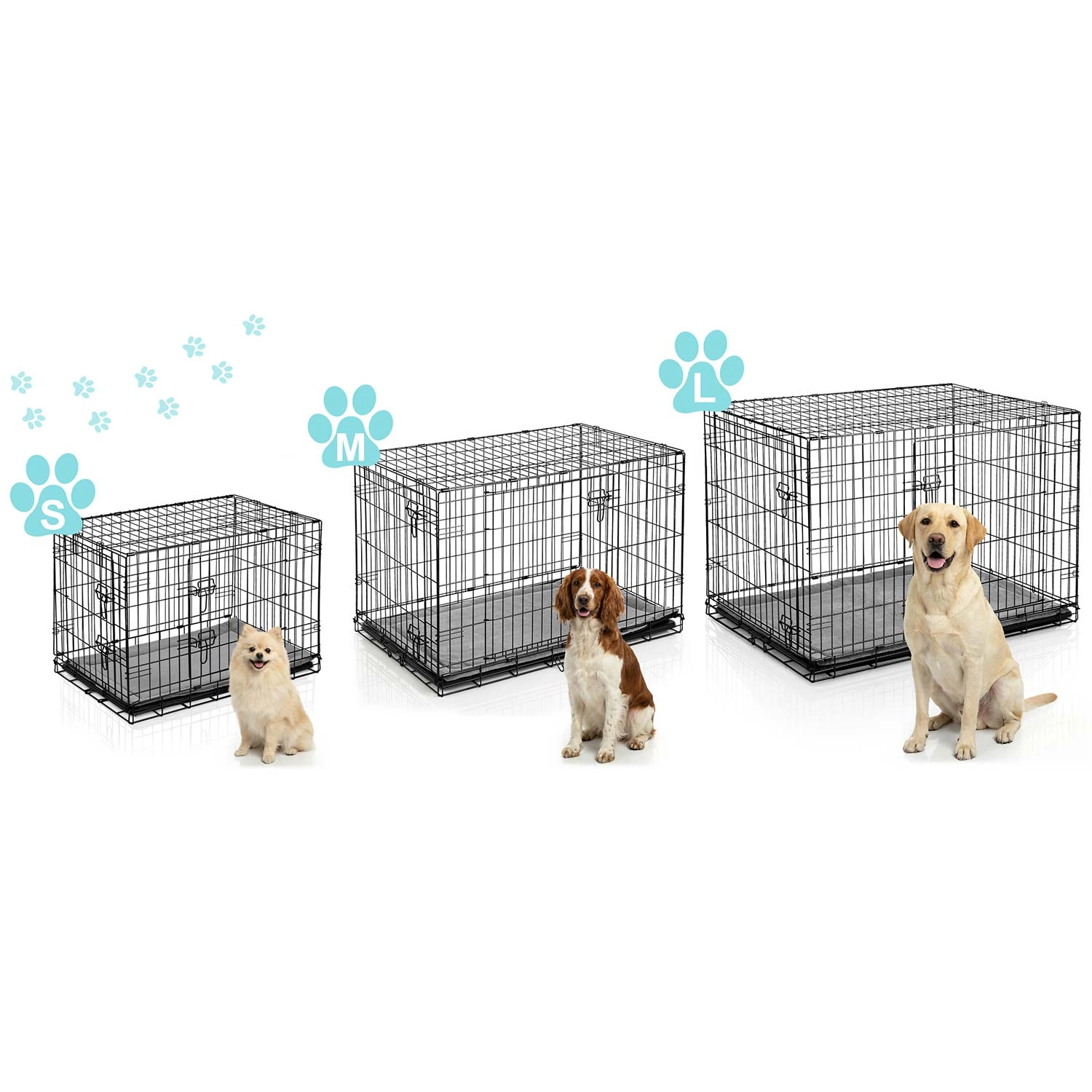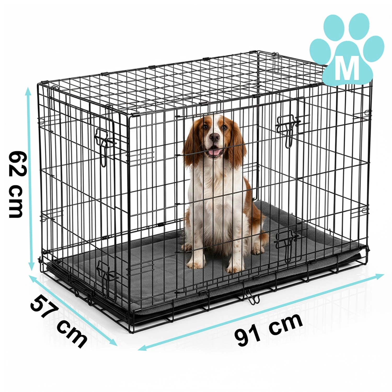 Ta metalowa klatka dla psów w rozmiarze M łączy solidną stalową konstrukcję z przemyślanymi detalami do codziennego użytku. Podwójne boczne i przednie drzwi z niezawodnymi zatrzaskami ułatwiają ustawienie w pomieszczeniu i zapewniają bezpieczne zamknięcie. Wyjmowana plastikowa taca umożliwia szybkie czyszczenie i utrzymanie idealnej higieny. W zestawie znajdziesz także wygodną matę, która zwiększa komfort podczas odpoczynku.