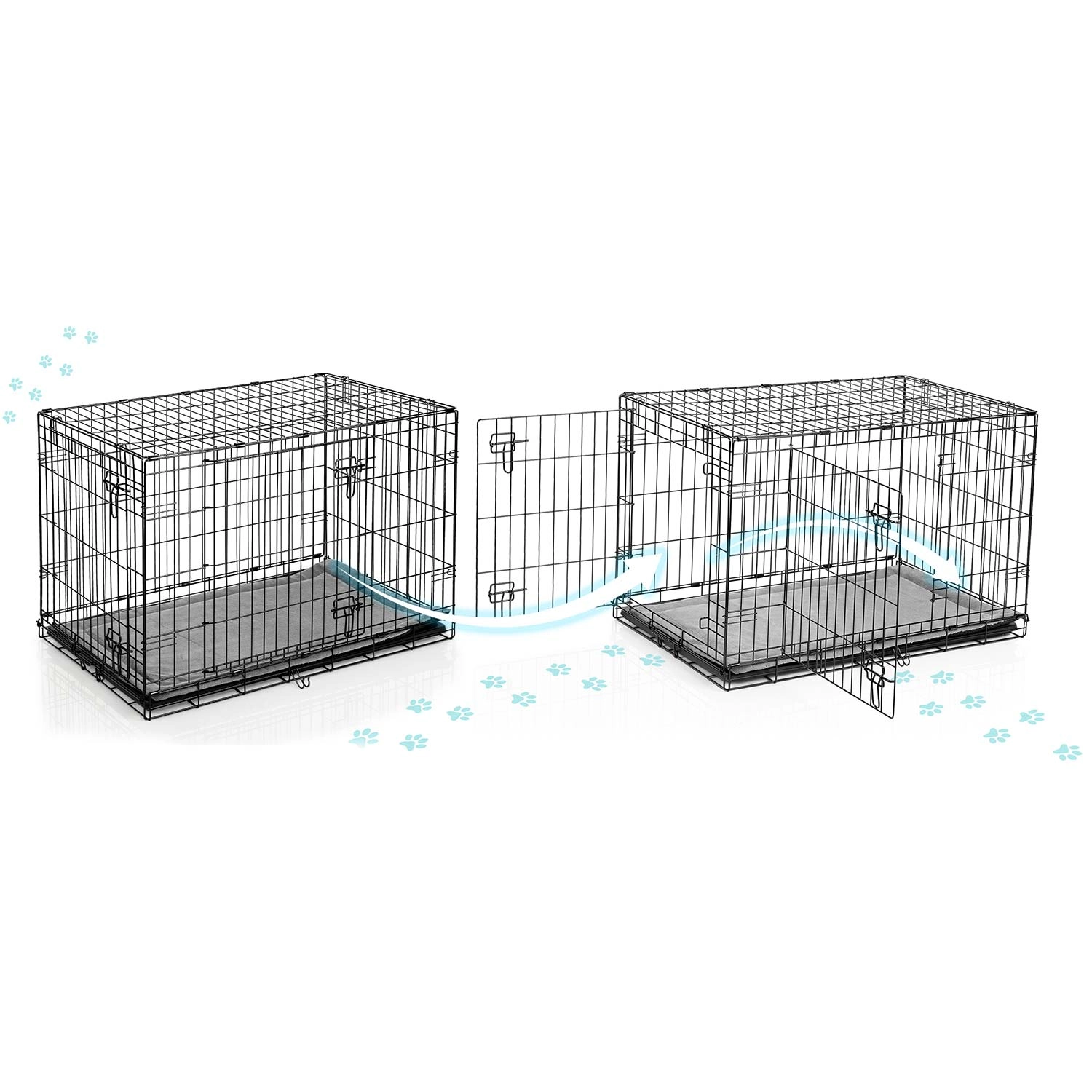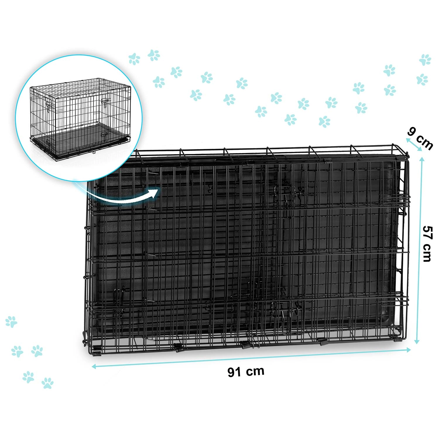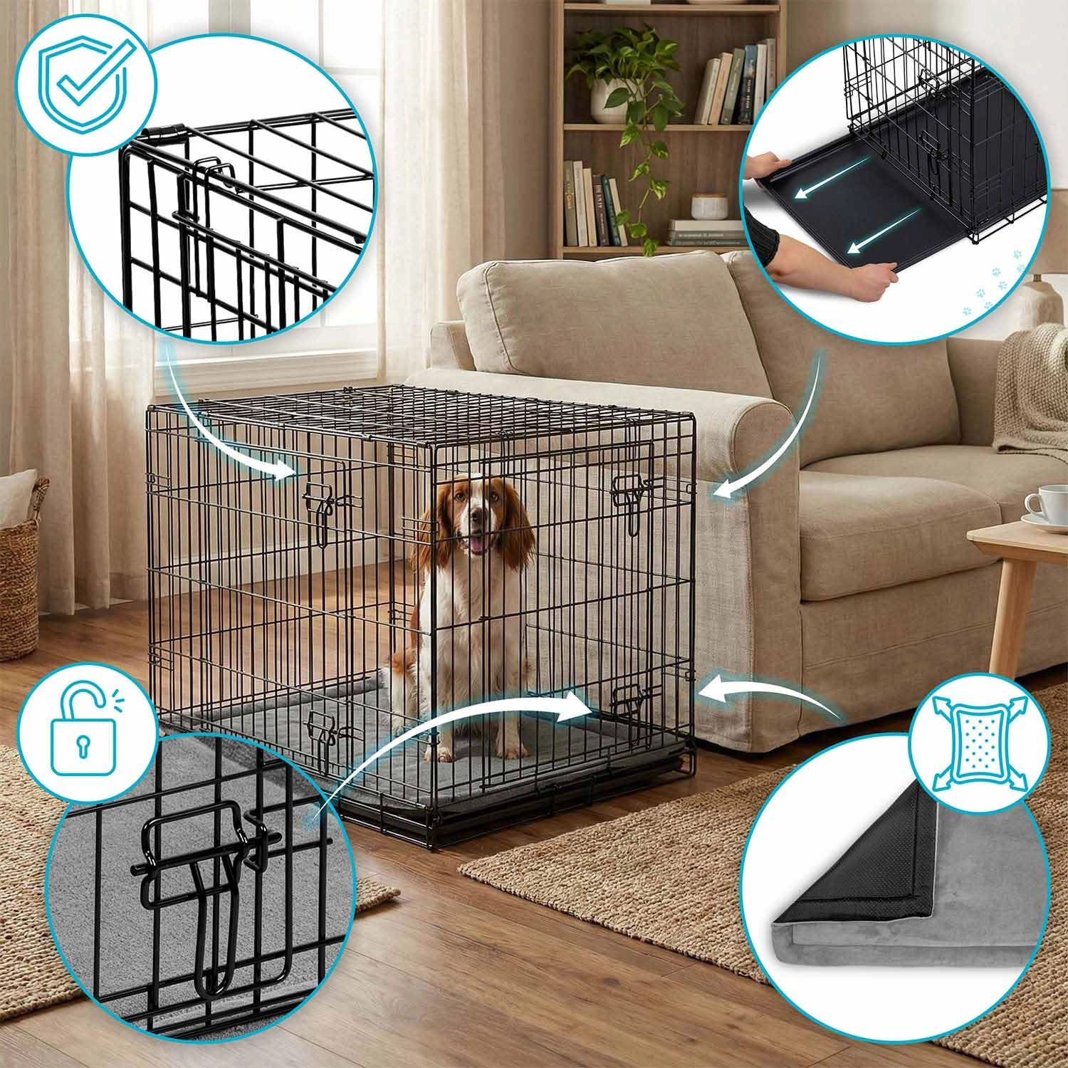 Ta metalowa klatka dla psów w rozmiarze M łączy solidną stalową konstrukcję z przemyślanymi detalami do codziennego użytku. Podwójne boczne i przednie drzwi z niezawodnymi zatrzaskami ułatwiają ustawienie w pomieszczeniu i zapewniają bezpieczne zamknięcie. Wyjmowana plastikowa taca umożliwia szybkie czyszczenie i utrzymanie idealnej higieny. W zestawie znajdziesz także wygodną matę, która zwiększa komfort podczas odpoczynku.