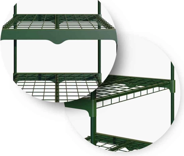 Rama ze stali malowanej proszkowo (Ø 16 mm) oraz solidne druciane półki gwarantują wytrzymałość i stabilność nawet przy pełnym obciążeniu.