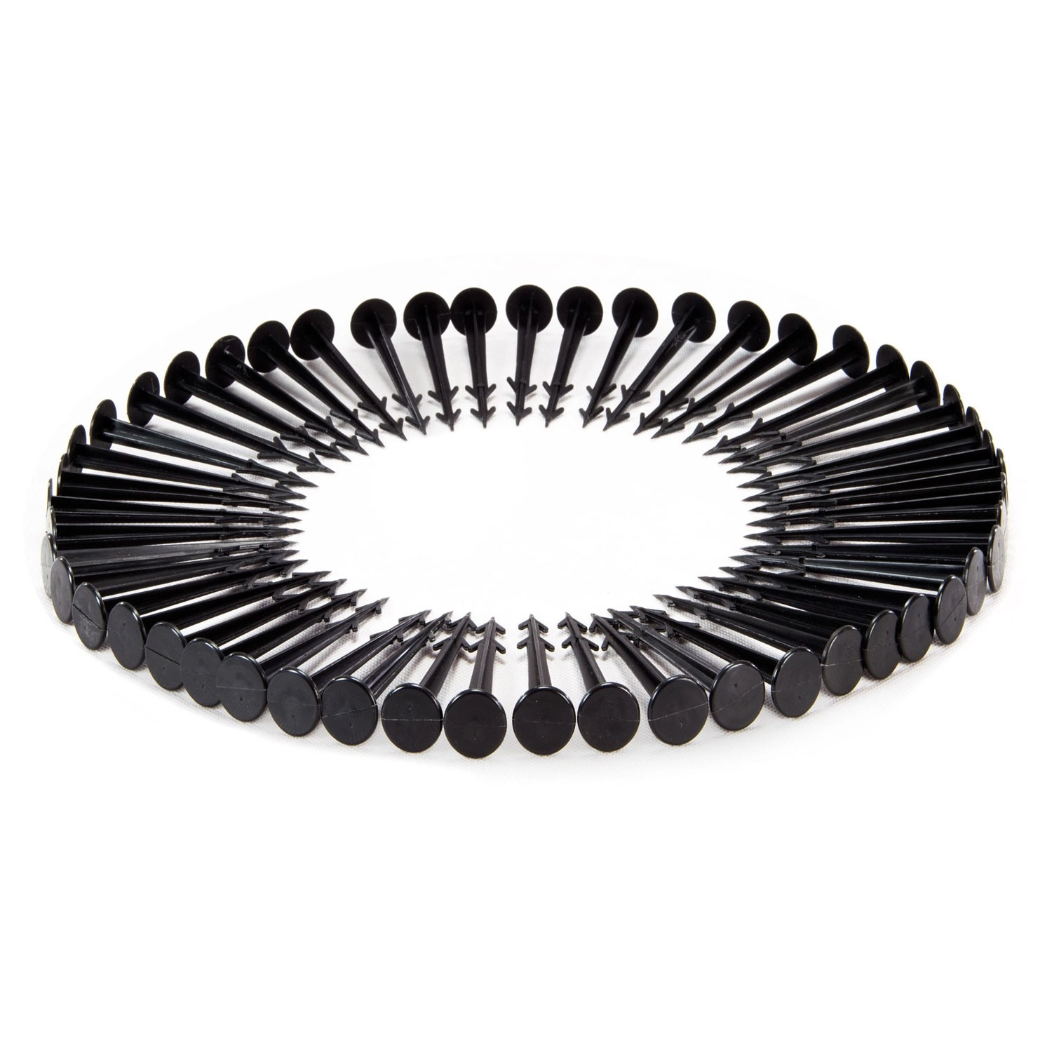 W skład zestawu wchodzi 50 wytrzymałych plastikowych kołków z szeroką główką i ostrzem ułatwiającym wbijanie. Zapewniają stabilizację włókniny nawet w wietrznych miejscach i zapobiegają podwiewaniu.