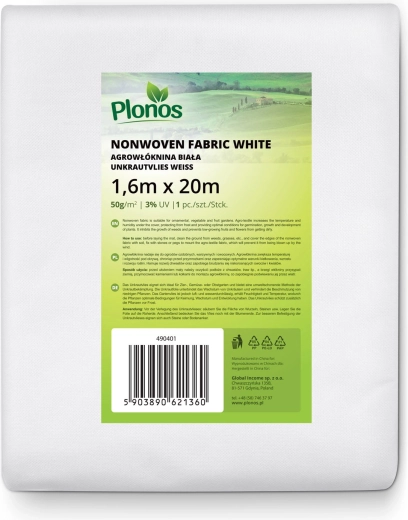 Niezawodna zimowa osłona z agrowłókniny PLONOS o wymiarach 1,6 × 20 m i gramaturze 50 g/m² chroni rośliny przed mrozem do −5 °C, wiatrem, śniegiem i gradem. Oddychający polipropylen przepuszcza światło i powietrze, jednocześnie zatrzymuje ciepło i tworzy warstwę izolacyjną. Odporna na promieniowanie UV i warunki atmosferyczne – idealna do ogrodu, sadu oraz na grządki od jesieni do wiosny.