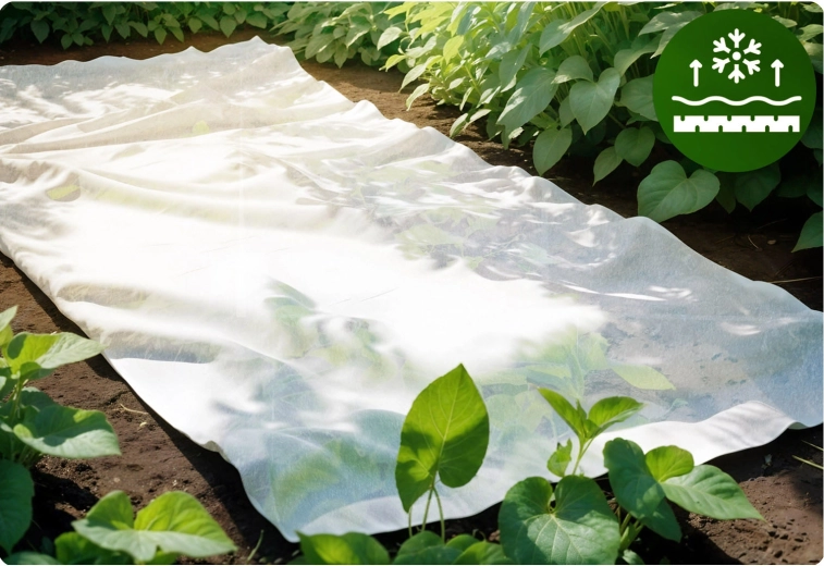 Agrowłóknina tworzy warstwę izolacyjną, która utrzymuje ciepło i chroni rośliny przed mrozem do −5 °C oraz porywistym wiatrem.