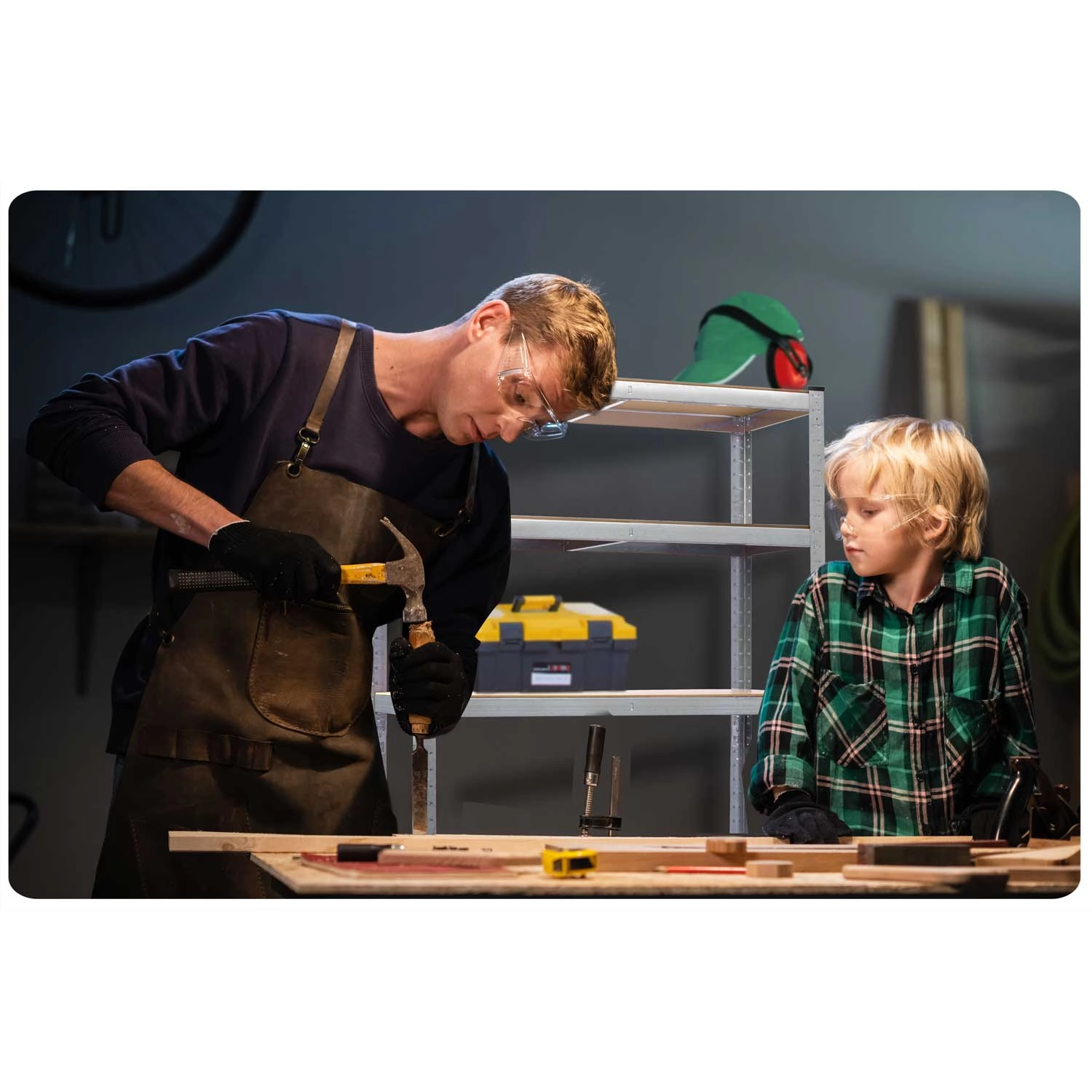 Praktyczny zestaw dwóch metalowych regałów do garażu, warsztatu lub piwnicy oferuje solidną konstrukcję, 4 półki z płyty MDF z regulacją wysokości oraz udźwig do 135 kg na półkę. Dzięki montażowi bezśrubowemu na zatrzask składanie jest szybkie i łatwe. Regały można rozłożyć na dwa niższe segmenty lub wykorzystać jako stół roboczy. Galwanizowane profile, ochronne stopki oraz zaokrąglone krawędzie zapewniają stabilność i bezpieczeństwo.