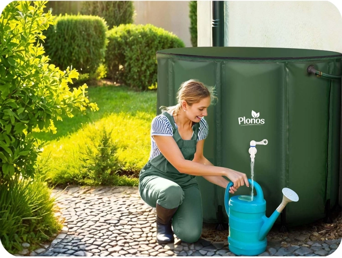 Gromadź za darmo deszczówkę do ogrodu, szklarni i trawnika. Składany zbiornik na deszczówkę Plonos 650 l oferuje dużą pojemność, wygodne dozowanie przez przedni kranik i szybkie opróżnianie dzięki dolnemu zaworowi. Dzięki podłączeniu do rynny oraz górnemu wlotowi z sitkiem woda pozostaje czystsza, bez liści i zanieczyszczeń.