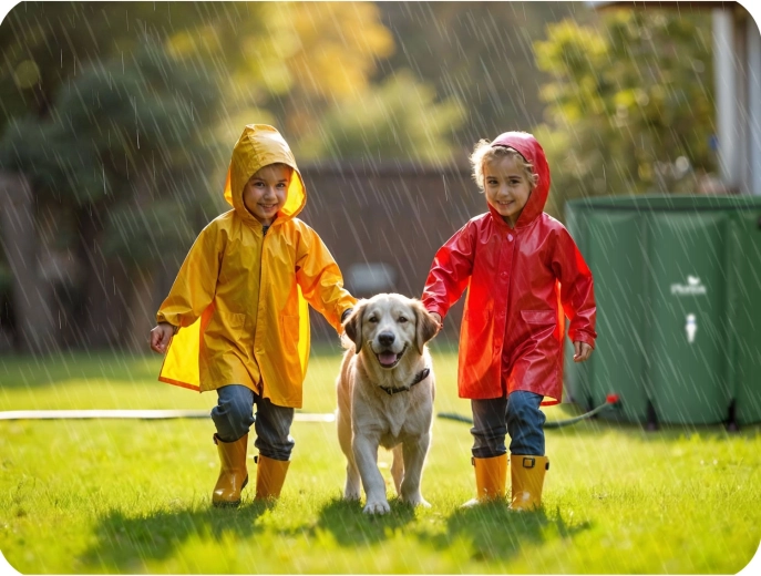 - Oszczędność do 50% kosztów wody w sezonie dzięki wykorzystaniu deszczówki.