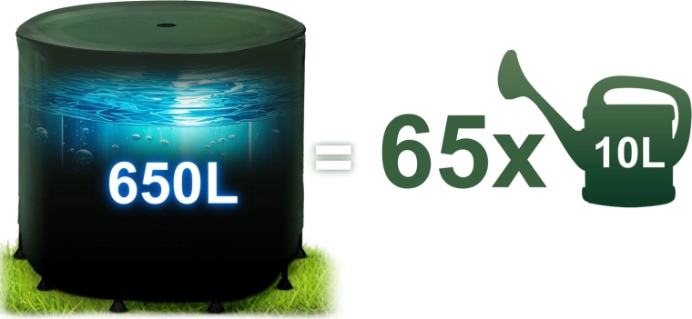 - 65 pełnych konewek 10 l z jednego zbiornika – wygodne podlewanie bez biegania do kranu.