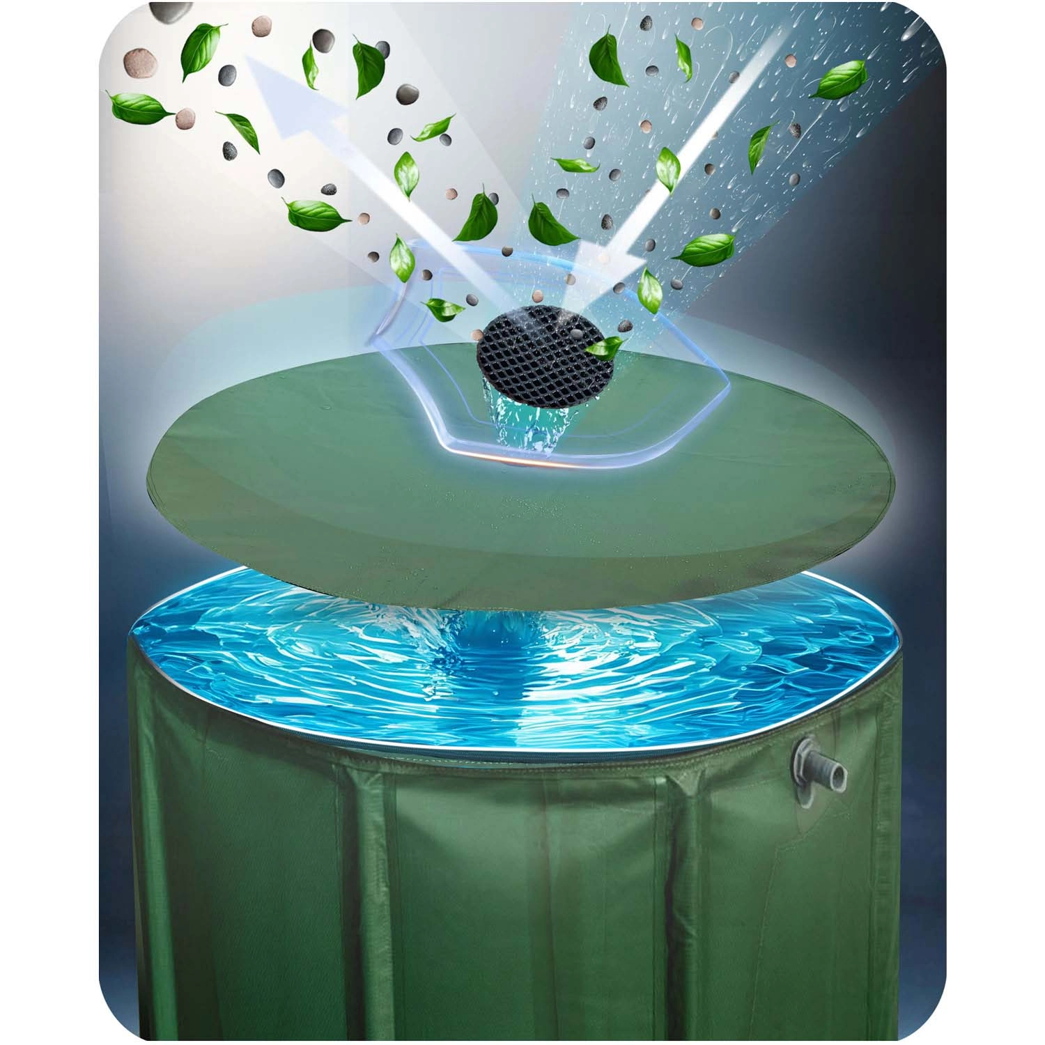 Odporny na UV płaszcz PVC, wzmocniona rama antykorozyjna i nóżki stabilizujące. Po sezonie zbiornik łatwo złożysz i przechowasz – zajmuje minimum miejsca.