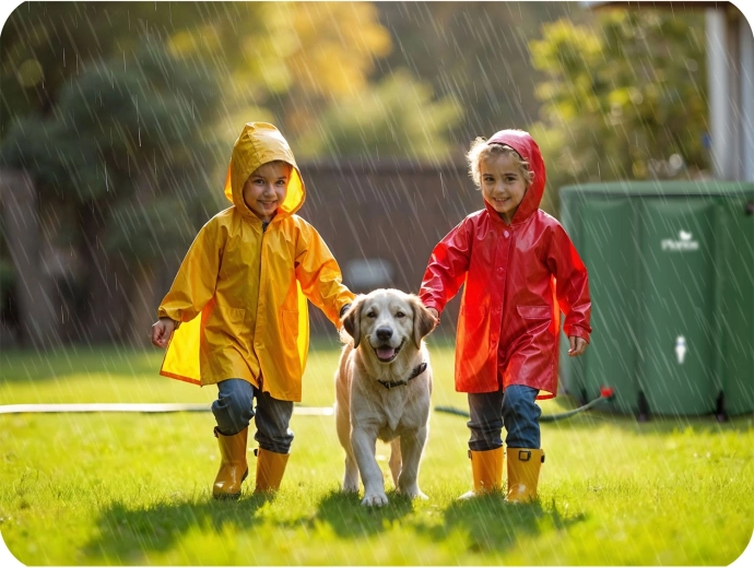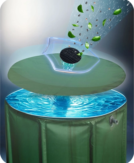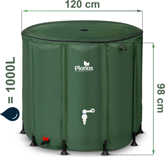 Plonos 1000 l to pojemny, a jednocześnie kompaktowy zbiornik na deszczówkę, który zaopatrzy cały ogród – nawet do 100 pełnych 10‑litrowych konewek. Wytrzymały, odporny na korozję stelaż oraz grube powłoki z PVC gwarantują stabilność i długą żywotność. Górny otwór wlewowy z sitkiem wyłapuje liście i brud, dzięki czemu masz do dyspozycji czystą wodę bez wysiłku.