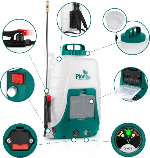 Wydajny akumulatorowy opryskiwacz plecakowy Plonos o pojemności 18 l i długim czasie pracy 3–4 h ułatwia pielęgnację ogrodu oraz większych powierzchni. Dzięki regulacji mocy silnika, wymiennym dyszom i regulowanej lancie uzyskasz precyzyjny, oszczędny i równomierny rozpyl. Wygodne wyściełane szelki, certyfikacja CE i odporny zbiornik z PE czynią ten opryskiwacz niezawodnym wyborem do nawożenia, ochrony przed szkodnikami oraz nawadniania.