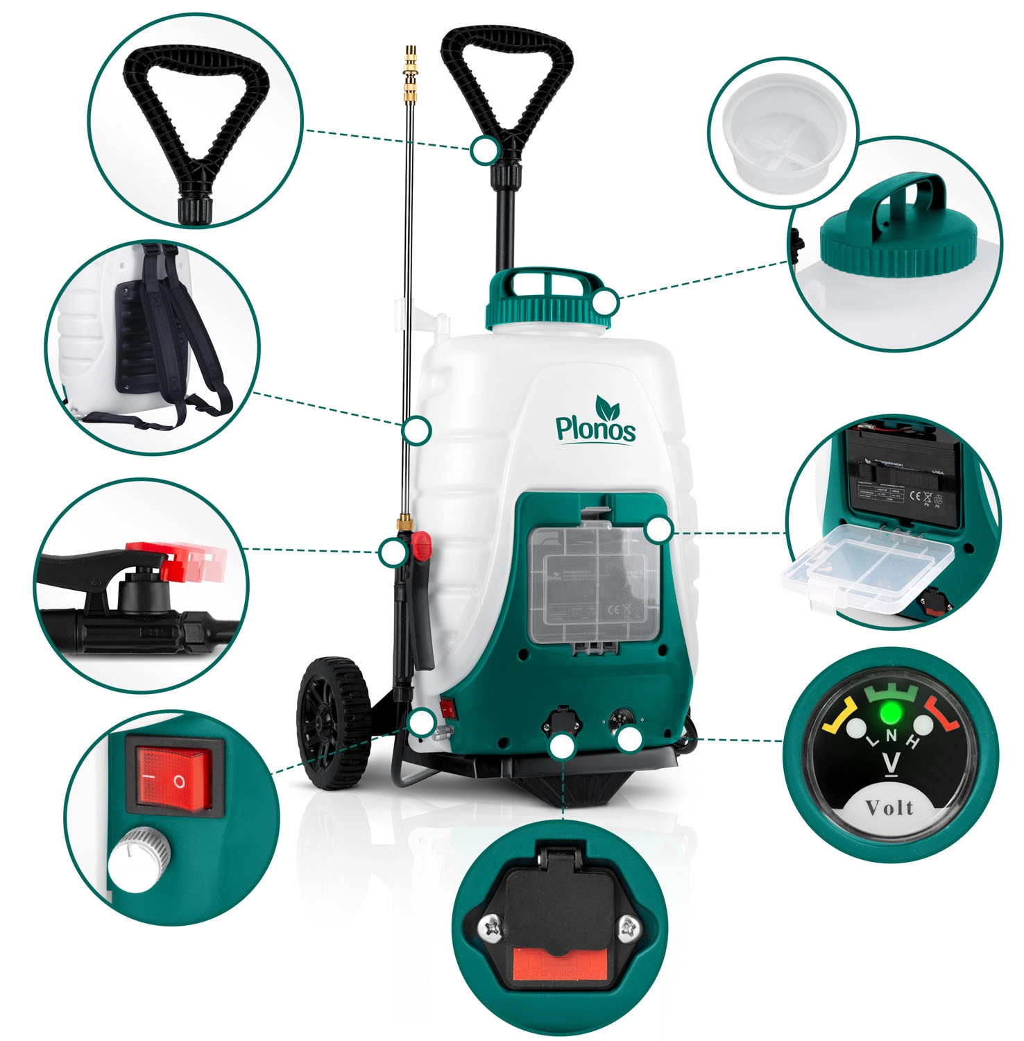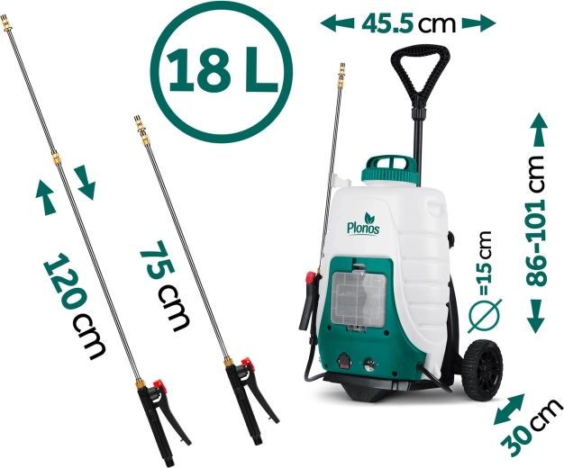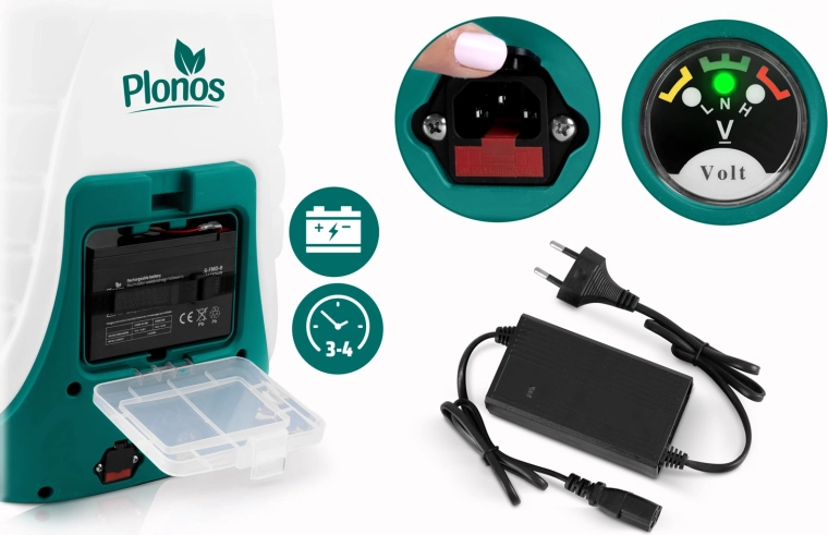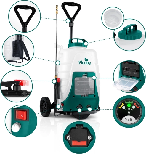 Duży zbiornik 18 l z wytrzymałego PE oraz ołowiowy akumulator 12 V / 8 Ah zapewniają długą i cichą pracę. Precyzyjne dozowanie i celowany oprysk pomagają oszczędzać środki chemiczne i wodę, a jednocześnie zwiększają skuteczność ochrony i nawożenia roślin na rabatach, w szklarniach i sadach.