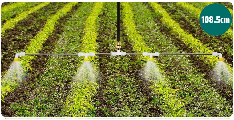 Od delikatnej mgły po ukierunkowany strumień – zestaw 8 dysz, w tym płaskostrumieniowych, podwójnych i z regulacją przepływu, zapewnia precyzyjne pokrycie. Czterodyszowa listwa opryskuje jednocześnie pas o szerokości do 108,5 cm.