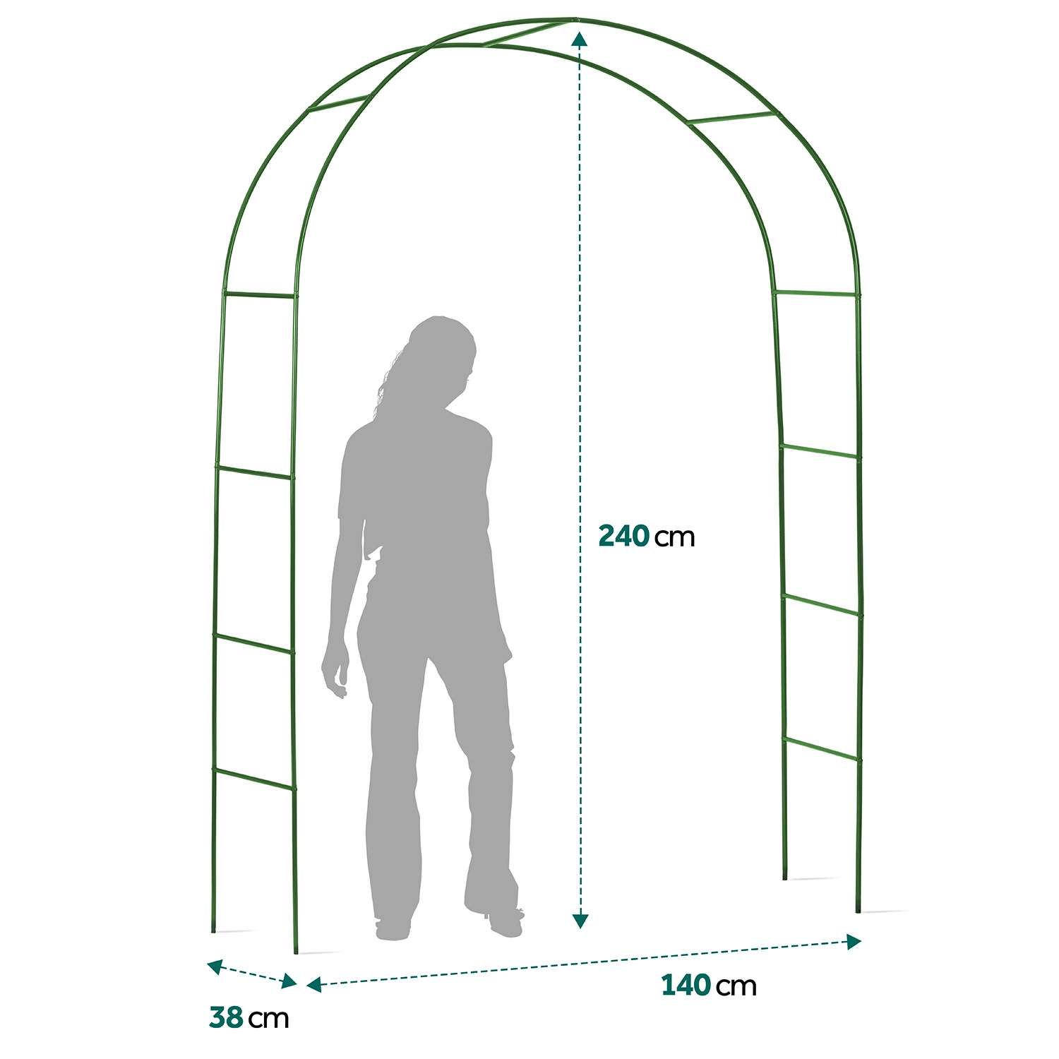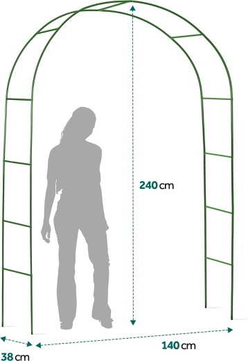 Ta stylowa ogrodowa pergola stanie się wyrazistą dominantą przy wejściu do ogrodu, wzdłuż ścieżki lub jako dekoracyjny element przy altanie. Minimalistyczny, łukowy kształt i ciemnozielone wykończenie naturalnie współgrają z nasadzeniami i wspierają gęsty wzrost pnączy, które stworzą naturalne zacienienie i przytulną atmosferę.