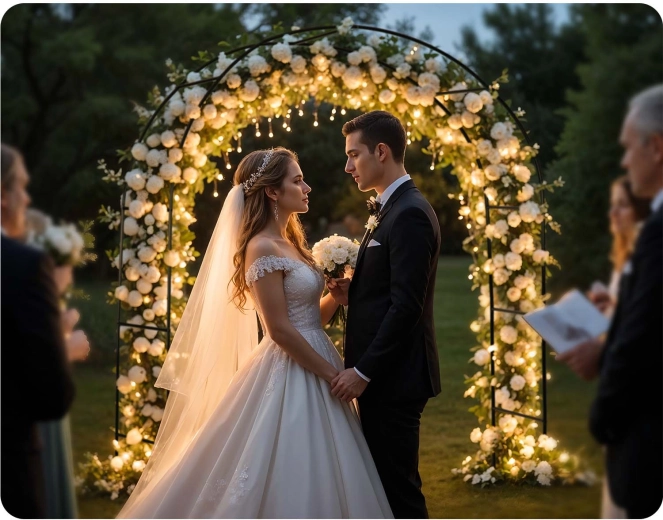 W zestawie znajdują się kotwy do bezpiecznego zakotwienia i śruby montażowe. Intuicyjny montaż wykonasz szybko i bez specjalnych narzędzi – w krótkim czasie stworzysz efektowne przejście lub romantyczne tło do zdjęć na wesela i przyjęcia.