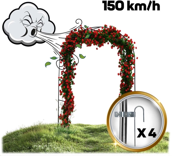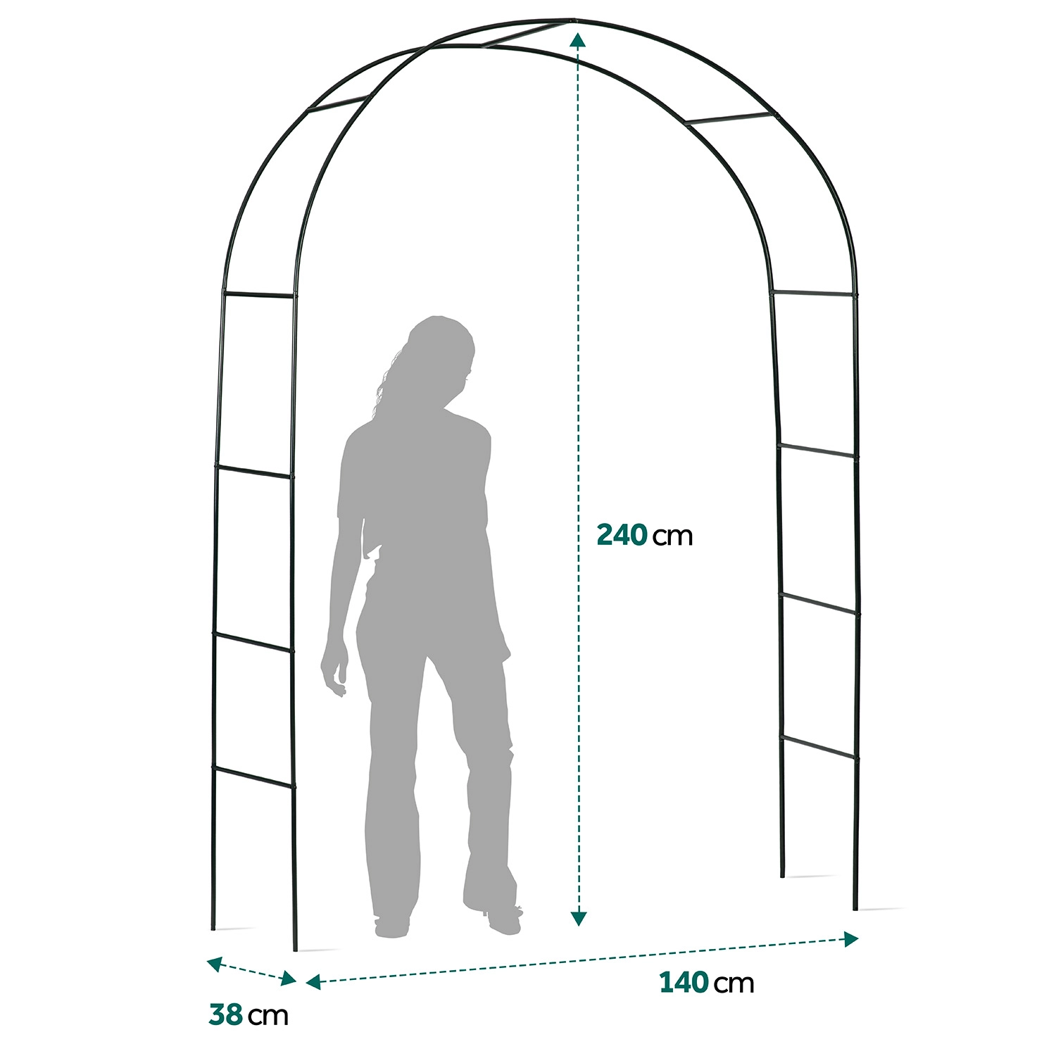 Elegancka ogrodowa pergola w kształcie łuku o wysokości 240 cm doda Twojemu ogrodowi romantycznego wejścia i zapewni podporę dla pnączy. Ma trwałą stalową konstrukcję z powłoką proszkową, łatwy montaż bez specjalistycznych narzędzi oraz kotwy do stabilnego zakotwienia w gruncie. Idealna dla róż, bluszczu, winorośli oraz dekoracji ze świetlnymi łańcuchami.