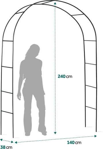 Łukowaty kształt tworzy naturalne podparcie dla róż, bluszczu czy winorośli i łatwo uzupełnia się go świetlnymi łańcuchami, budując uroczysty nastrój.