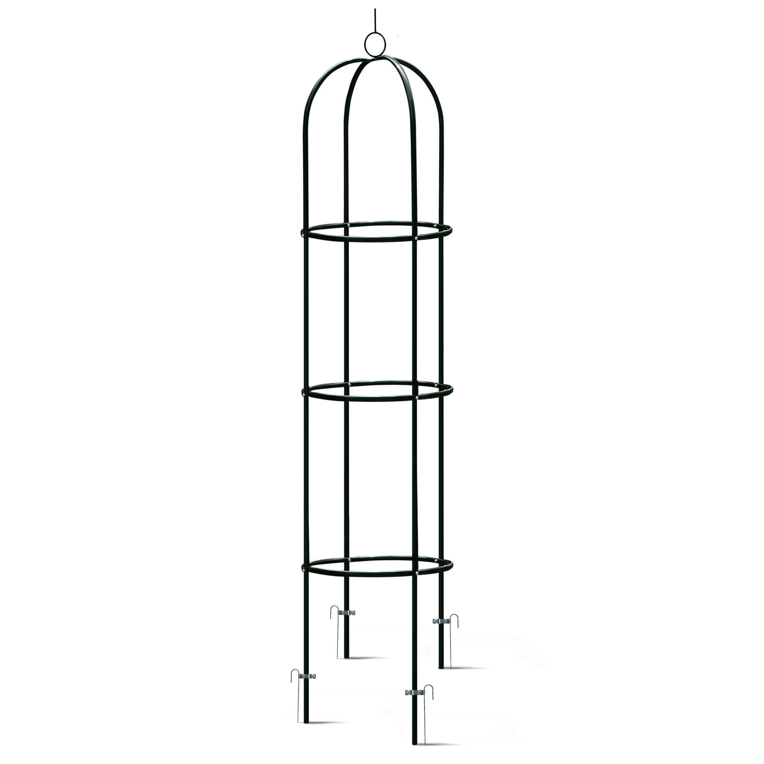 Trzy okrągłe wzmocnienia i cztery pionowe pręty zapewniają mocną konstrukcję, która prowadzi rośliny ku górze i wspiera obfite kwitnienie.