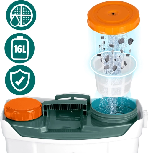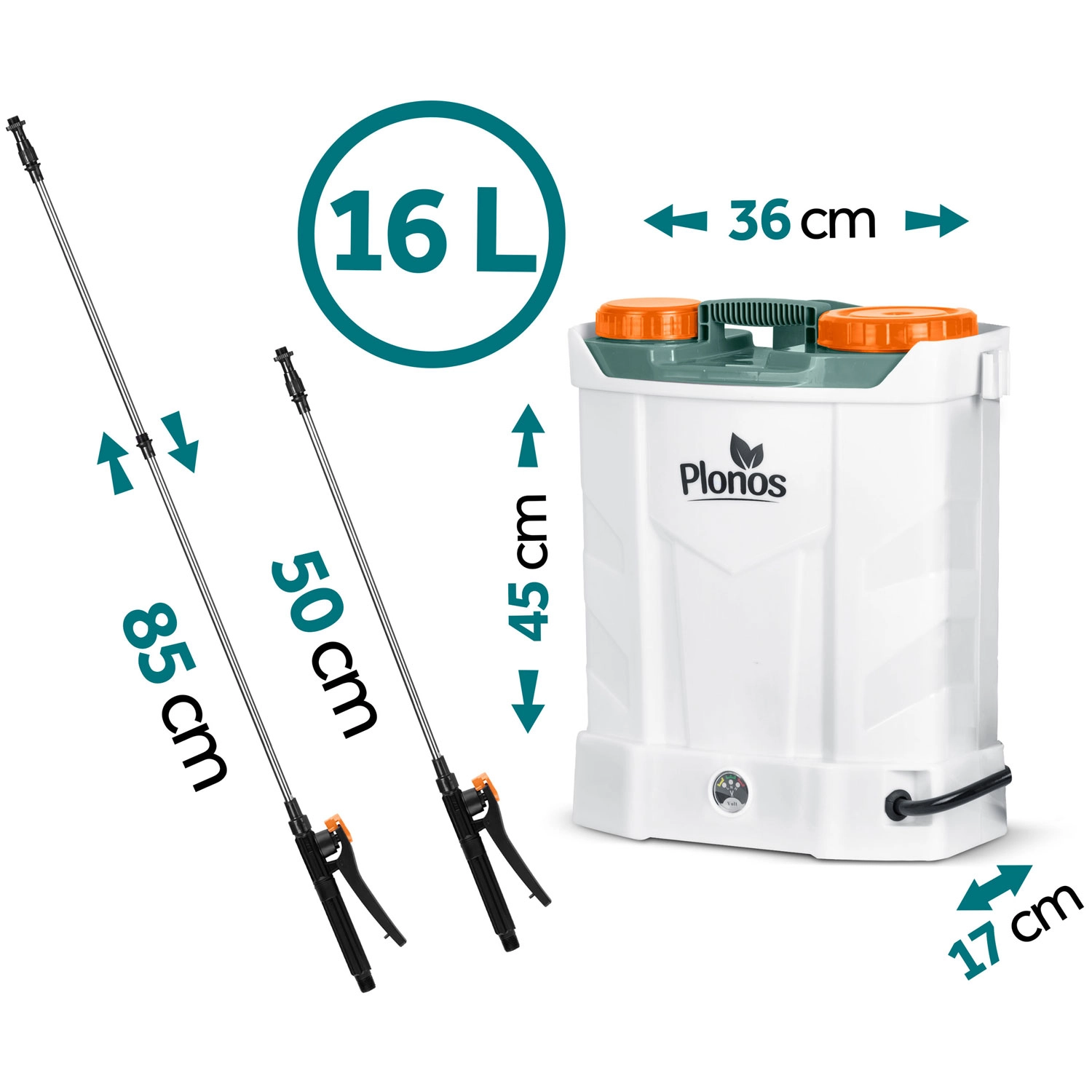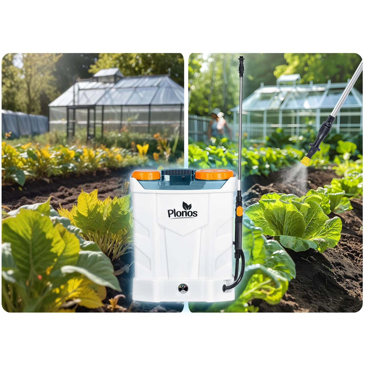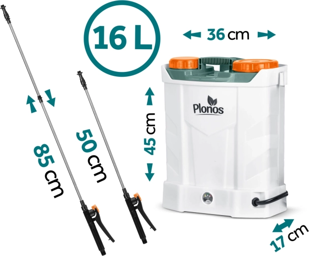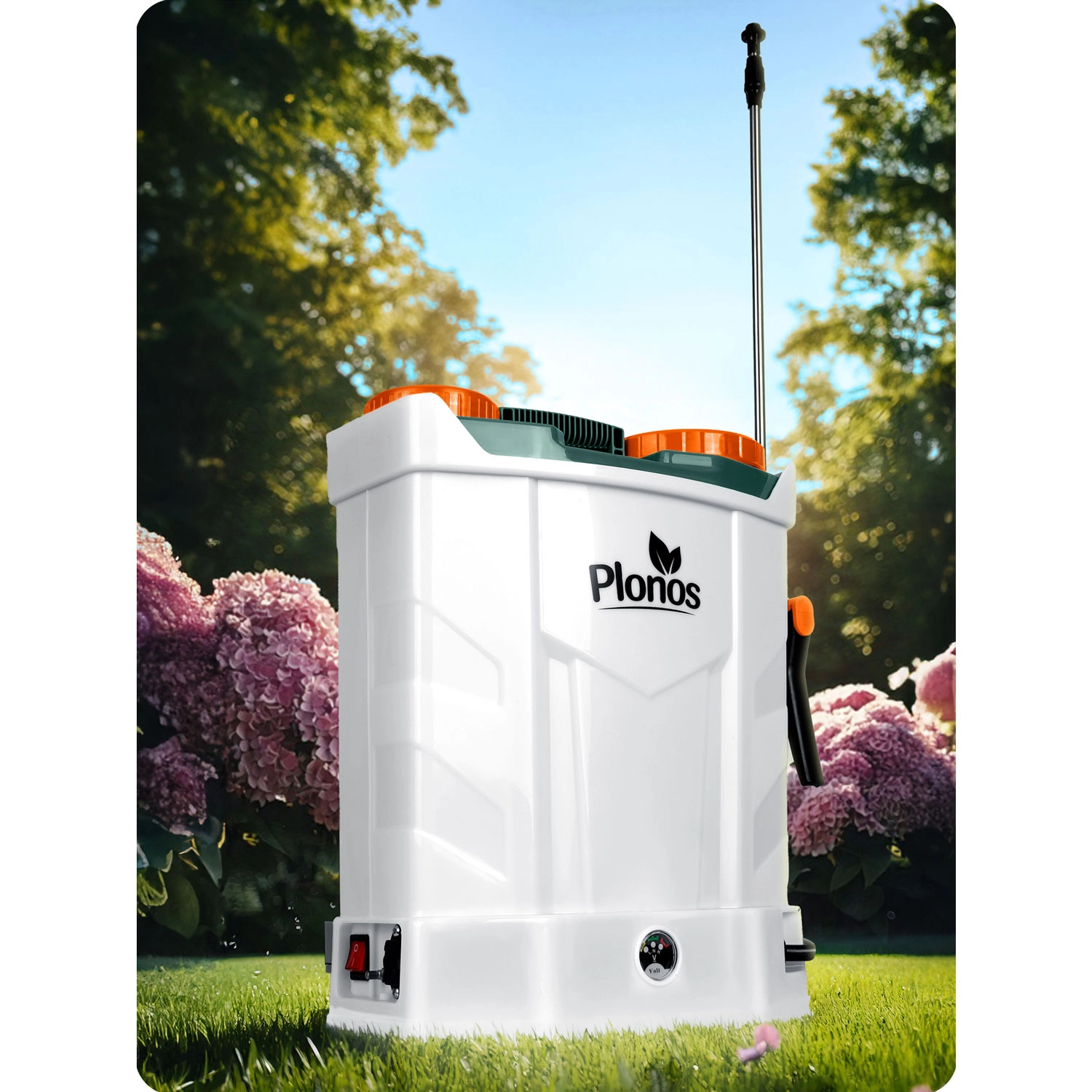 Akumulatorowy opryskiwacz PLONOS PL-602 to idealny wybór do efektywnej ochrony roślin przed szkodnikami i chorobami oraz do regularnego nawadniania. Duży zbiornik 16 l, cicha praca i wydajna bateria 12 V / 8 Ah zapewniają płynne i równomierne nanoszenie oprysków nawet przez 3–4 godziny. Solidna obudowa z chemicznie odpornego PE i certyfikacja CE gwarantują długą żywotność i bezpieczne użytkowanie.